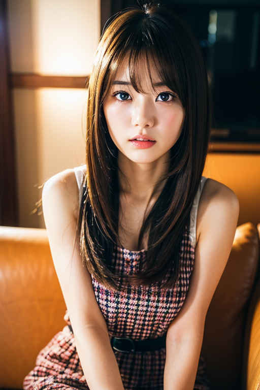 | 最高品質、超高解像度、(フォトリアリスティック:1.4)、RAW写真、日本人女の子1人、ソロ、かわいい、(瞳孔、目のライト)、詳細な美しい顔、(ロングヘア)、ソファに座る |