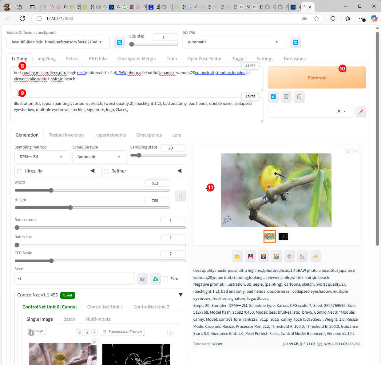 Parameter | Steps: 20, Sampler: DPM++ 2M, CFG scale: 7, 512x768, Clip skip: 1, Model: beautifulRealistic_brav5 |