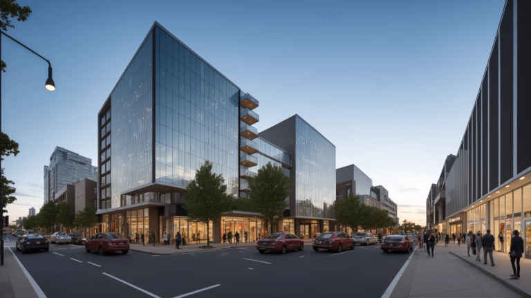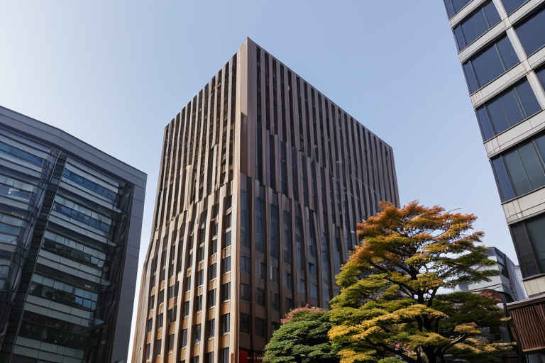 | 東京のオフィス街にある10階建て木質化テナントビル |