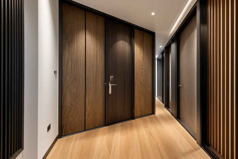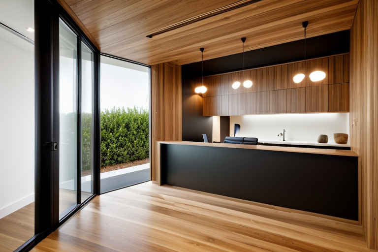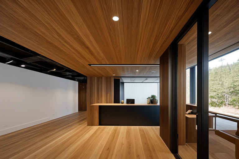 | 自然素材とモダンなデザインが調和するオフィスエントランス |