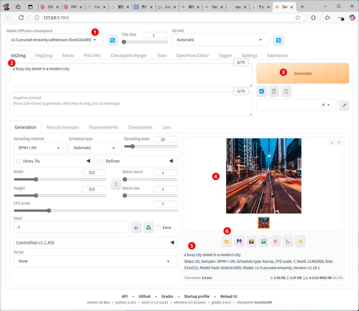 ⑥「Generate」ボタンを押す | web UI v1.10 | web UI v1.6 | web UI v1.6(OV) |