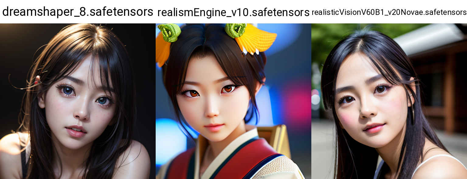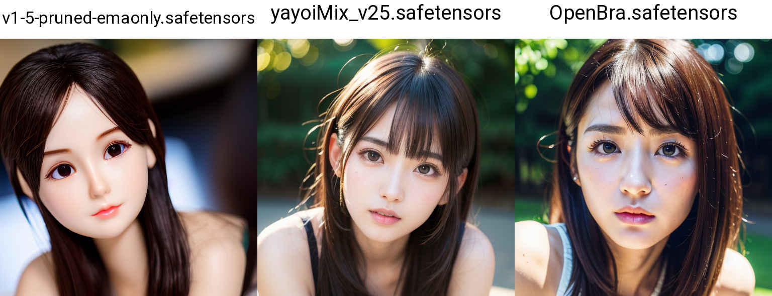■ 比較画像の作成 ■ 比較対象の要素を3軸まで指定できます。比較画像の保存先「stable-diffusion-webui/outputs/txt2img-grids/XXXX-XX-XX/」(XX… は日付) |