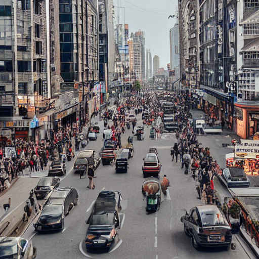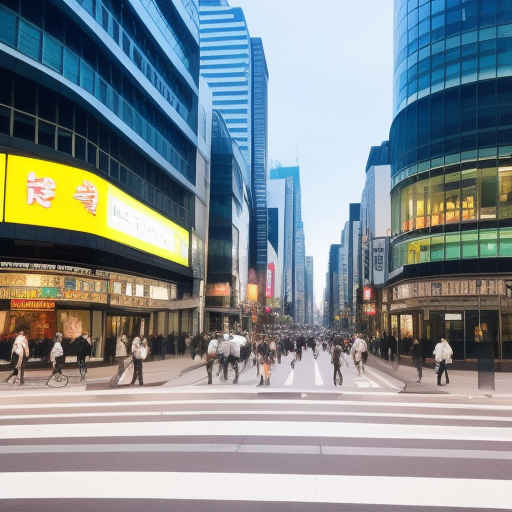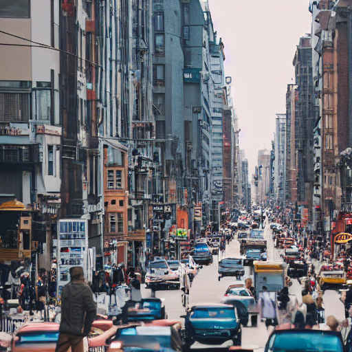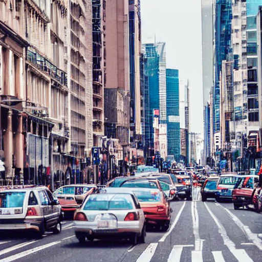 " a busy city street in a modern city"(近代的な都市のにぎやかな街路)