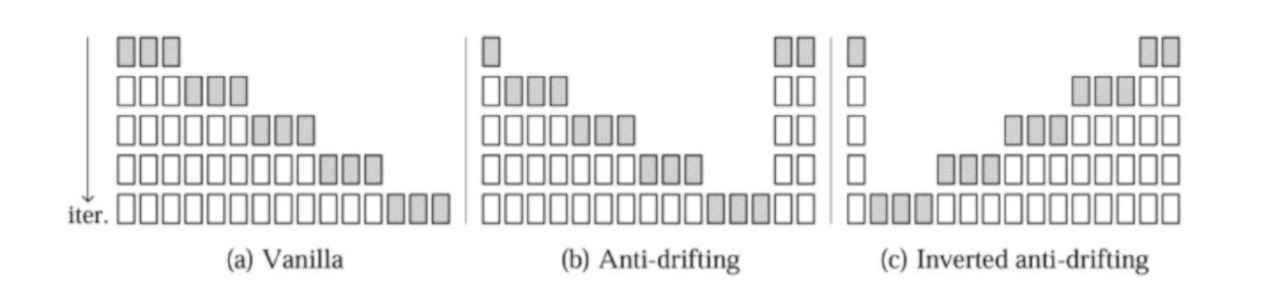 例えば、「アンチドリフティングサンプリング」(図2のb)では、最初の イテレーションで始まりと終わりの両方のセクションを同時に生成して、その後 のイテレーションでこれらのアンカー間のギャップを埋めていく。