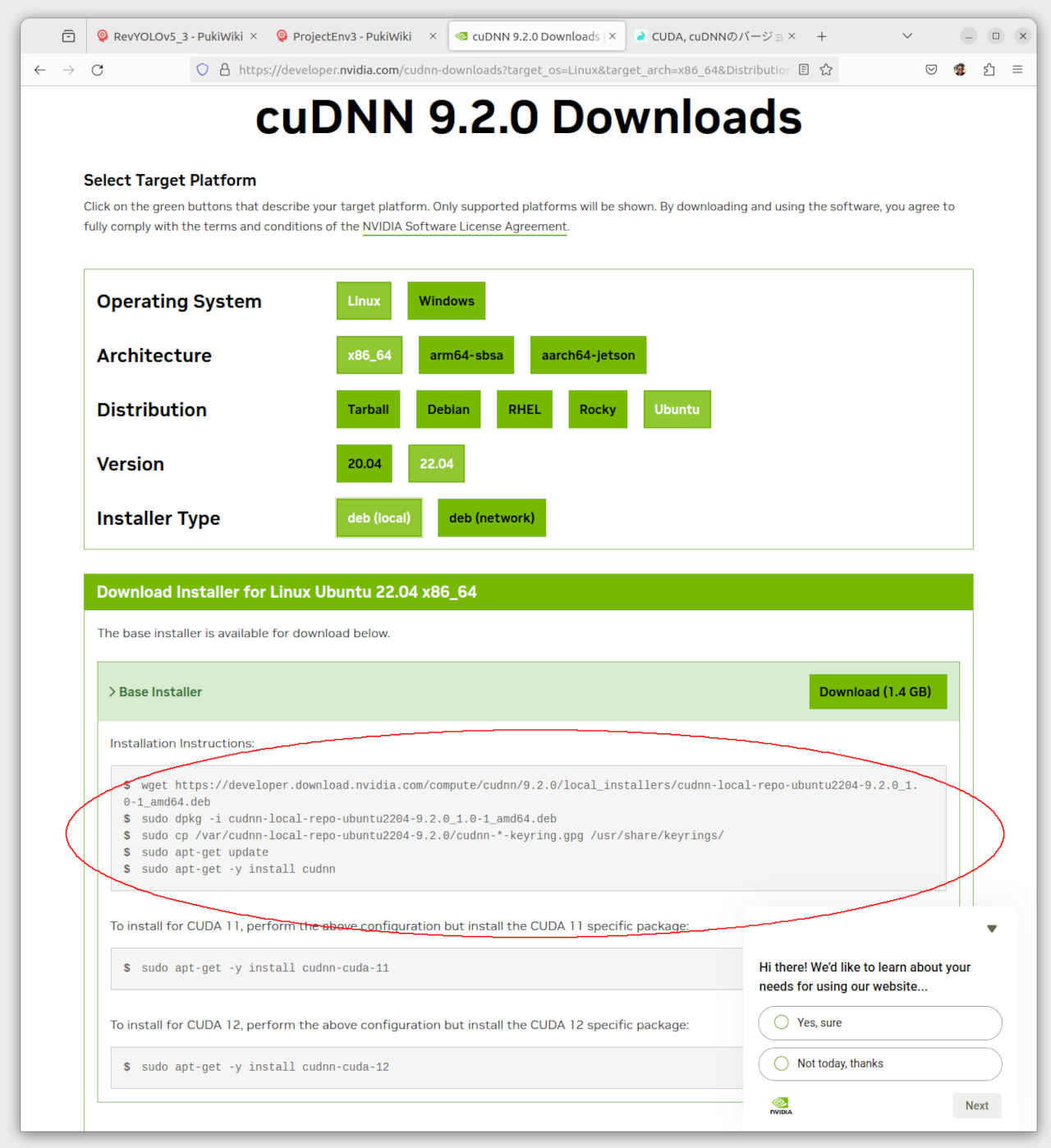$ wget https://developer.download.nvidia.com/compute/cudnn/9.2.0/local_installers/cudnn-local-repo-ubuntu2204-9.2.0_1.0-1_amd64.deb $ sudo dpkg -i cudnn-local-repo-ubuntu2204-9.2.0_1.0-1_amd64.deb $ sudo cp /var/cudnn-local-repo-ubuntu2204-9.2.0/cudnn-*-keyring.gpg /usr/share/keyrings/ $ sudo apt-get update $ sudo apt-get -y install cudnn