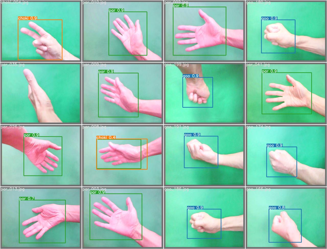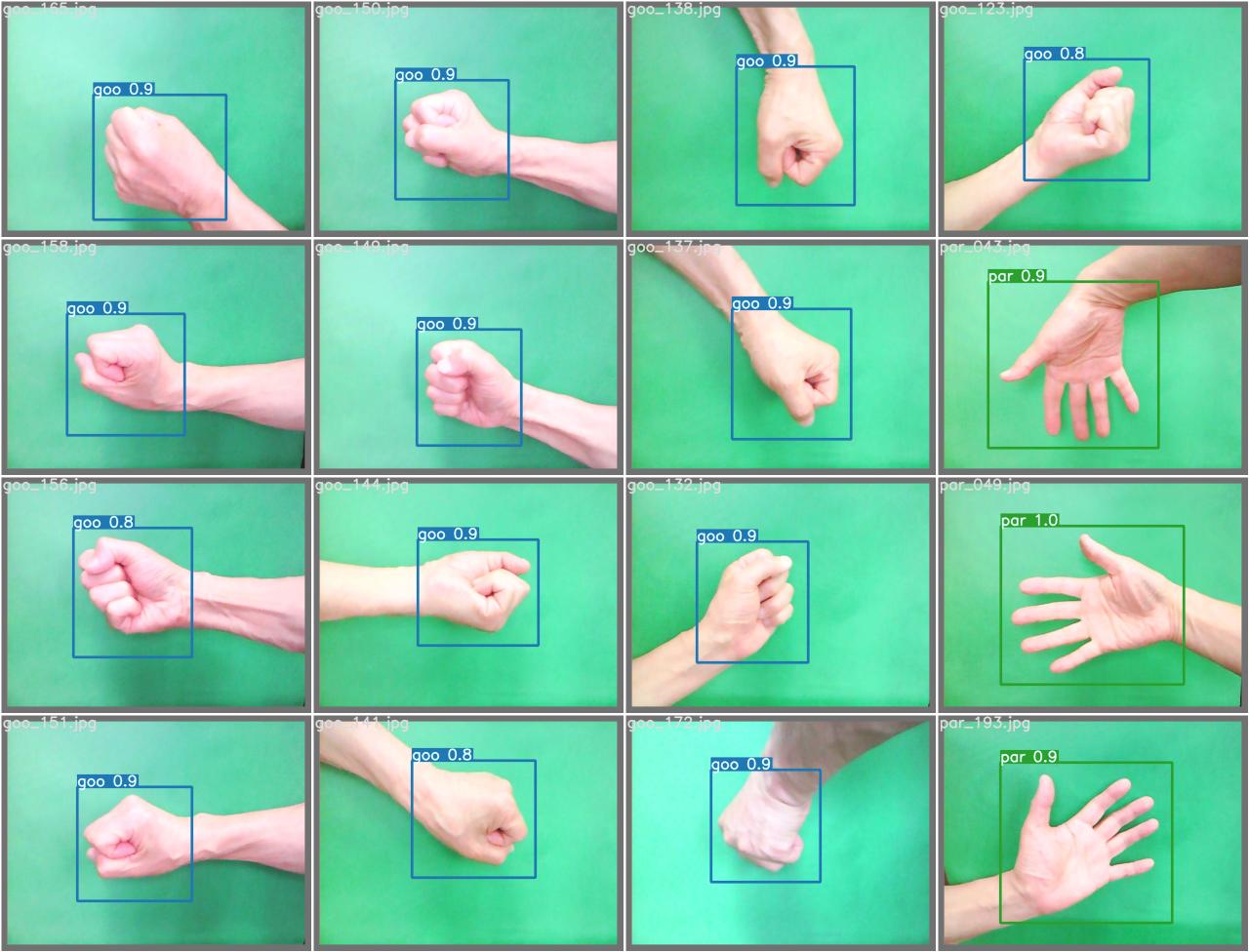 (py38a) $ cd ~/work/yolov7-main (py38a) $ python detect2.py --weights runs/train/yolov7x_custom2_60/weights/best.pt --conf 0.25 --img-size 640 --source ../../Images/janken2.jpg --view-img