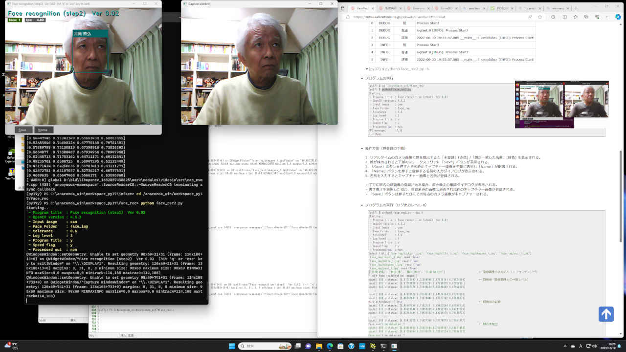 (py37y) PS > python face_rec2.py Starting.. - Program title : Face recognition (step2) Ver 0.02 : FPS average: 20.20 Finished.