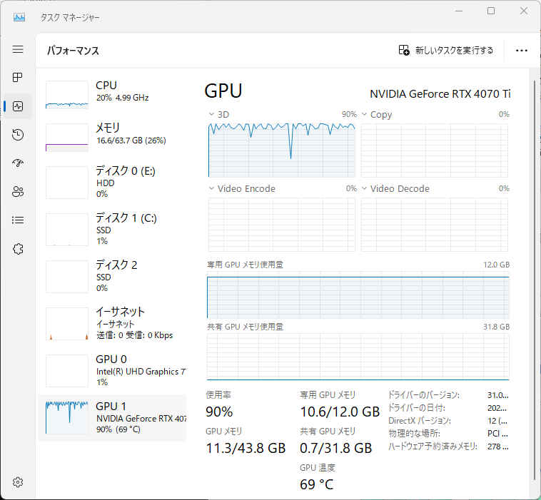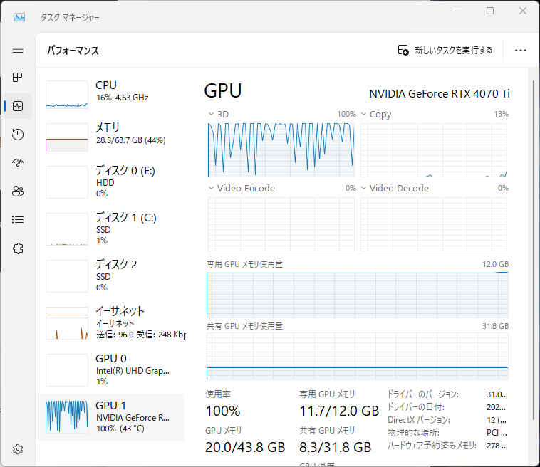 同時に「NVIDIA cuda GPU」を使用できる環境構築をする