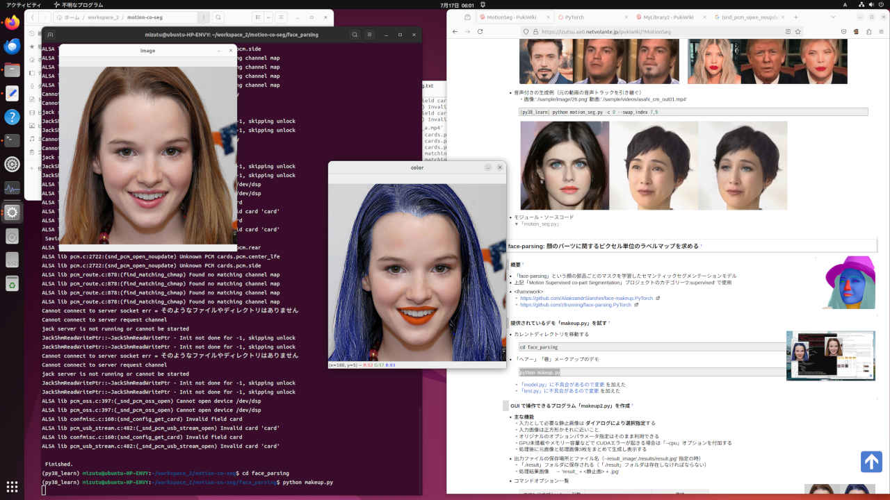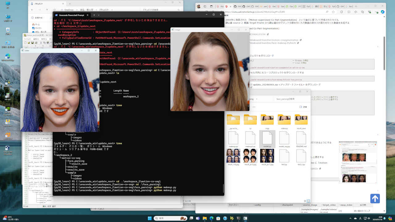 提供されているデモ「makeup.py」を試す