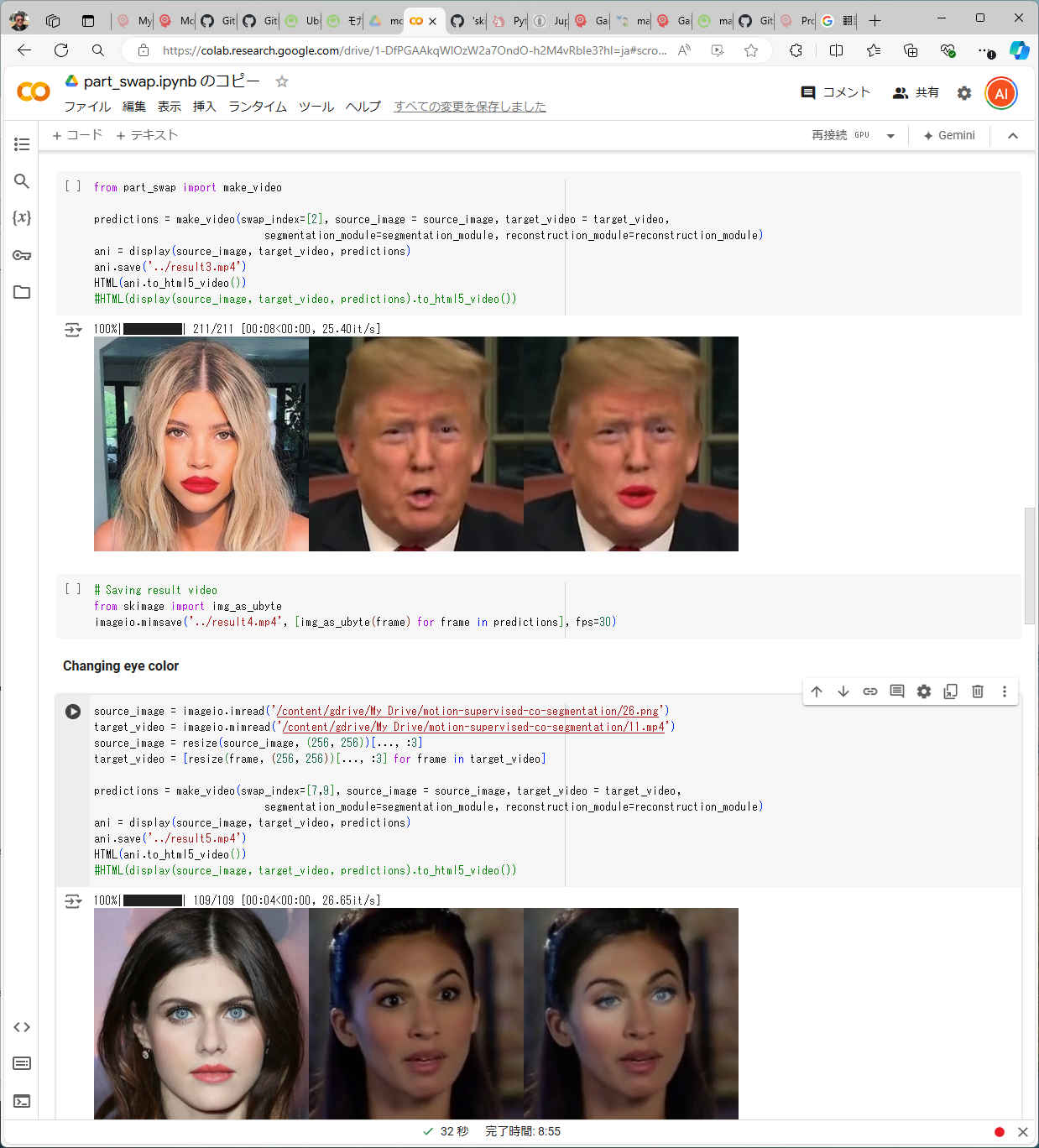 提供されているデモ「part_swap.py」を試す