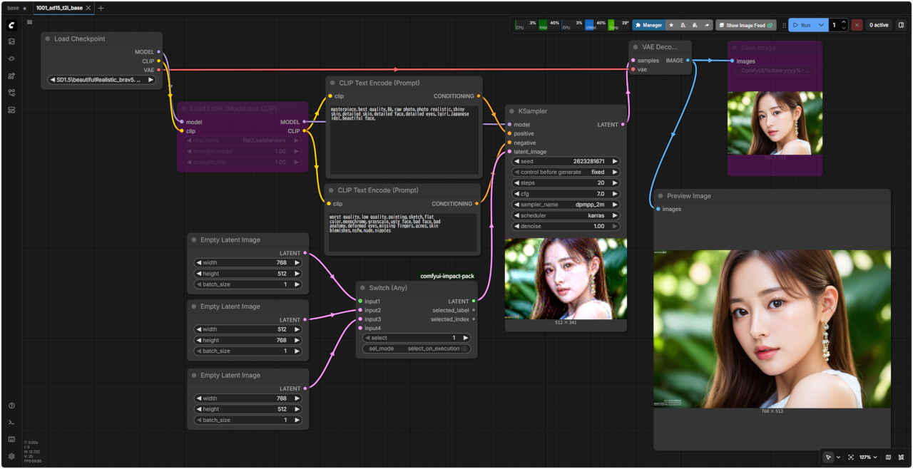 | 「ComfyUI マスターガイド」では SDXL モデルを主にしているが、これまでの SD1.5 系のワークフローについても見直して再構成してみる |