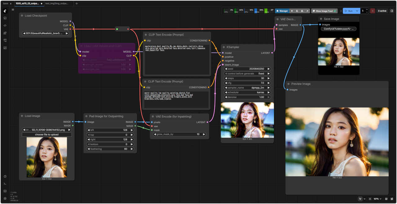 | 1005_sd15_i2i_outpaint.json | SD15 モデル Outpaintワークフロー | 00:09.17 | 00:09.07 | 00:44.68 | 00:26.57 | 01:12.19 | 08:20.98 | 18:31.06 |