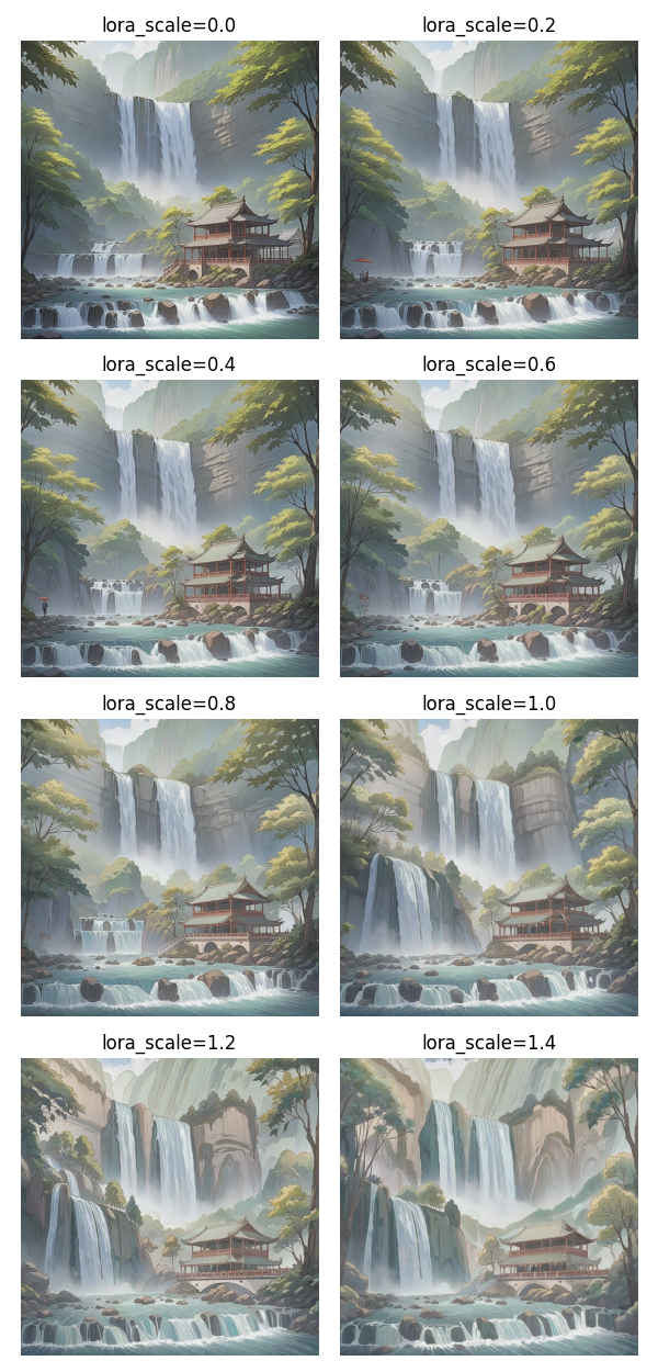 prompt = "guofeng, nature and waterfall photography"        # トリガーワードが含まれる