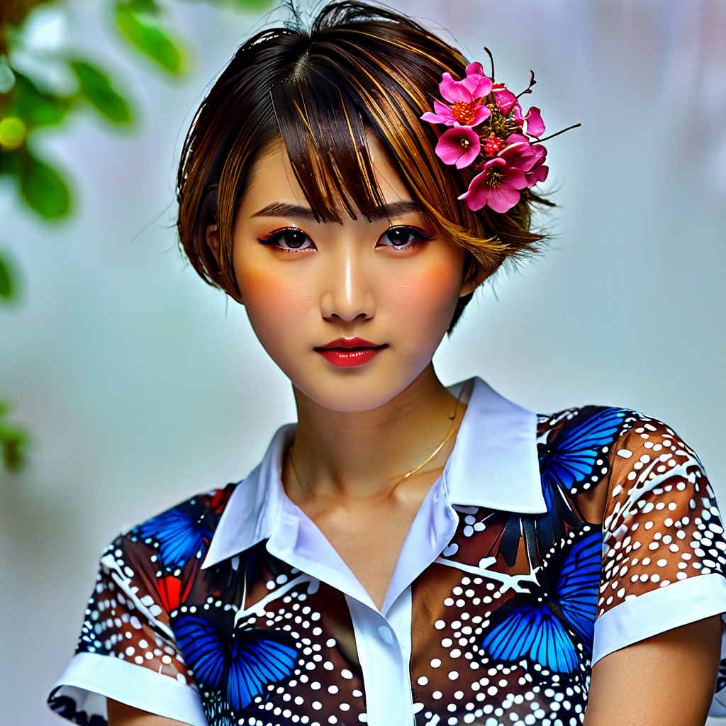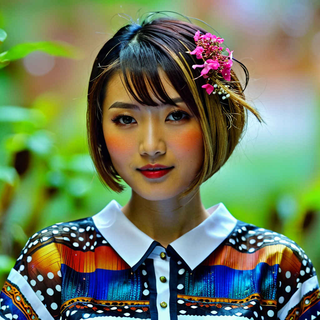 | Prompt | a japanease woman with a short haircut and a white shirt is posing for a picture with a white background, perfect face, a character portrait, precisionism |