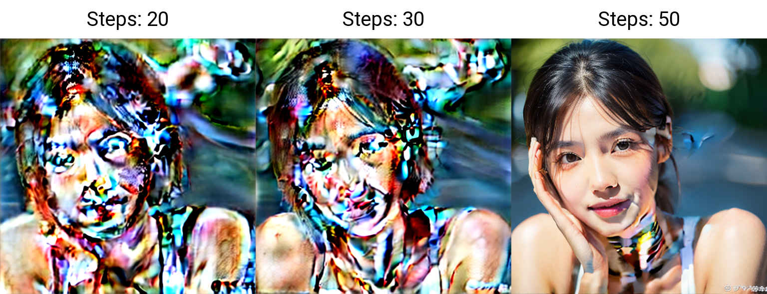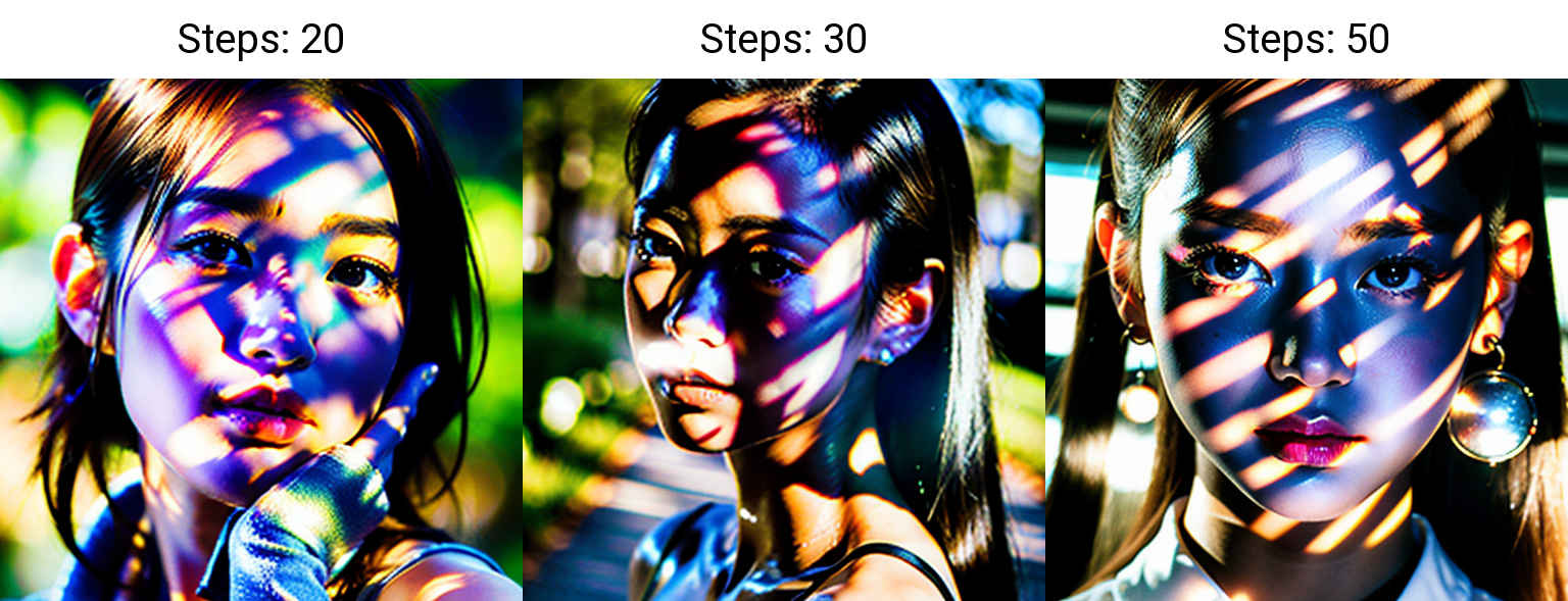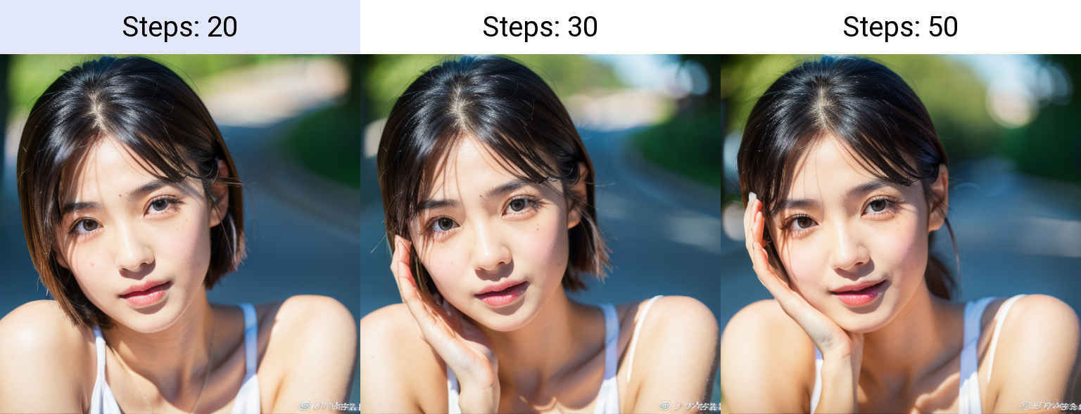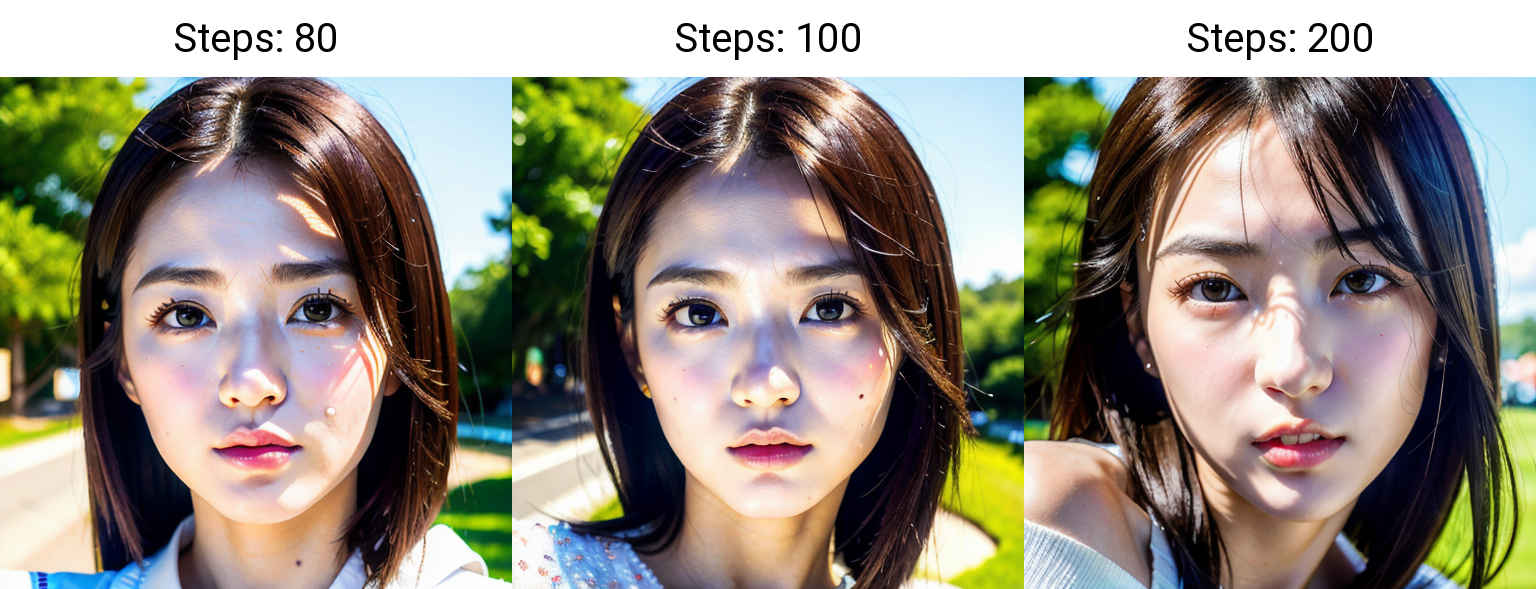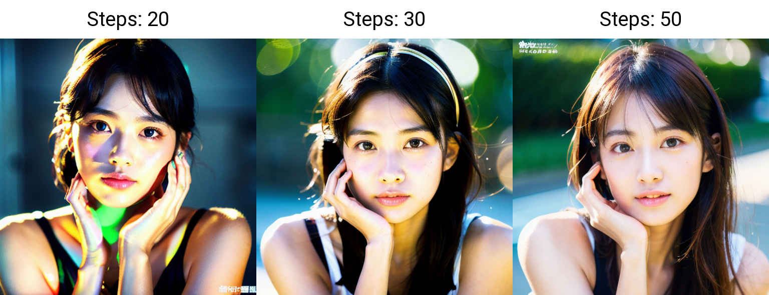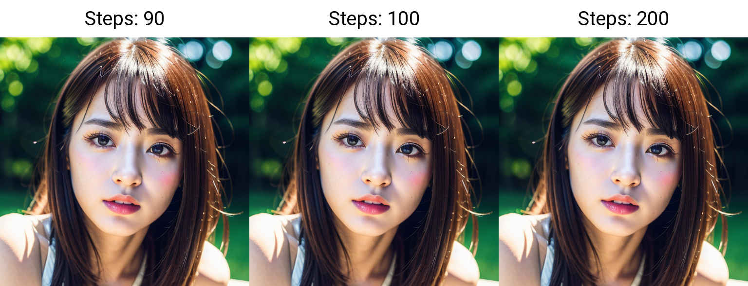 | DPM Adaptive | 状況に応じて適応的にサンプリングを行う 必要な箇所に焦点を当てた画像生成が可能となり、ディテールと速度のバランスを取ることができる | 30 〜 50 |
