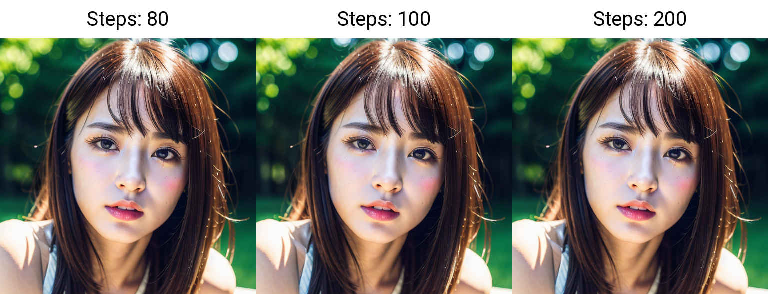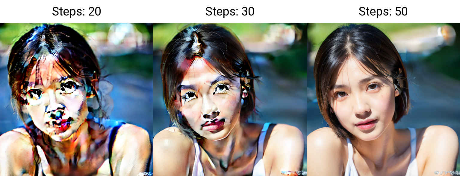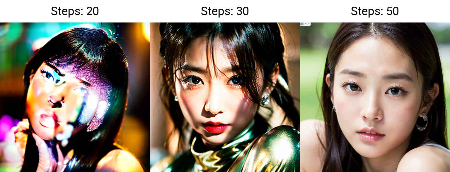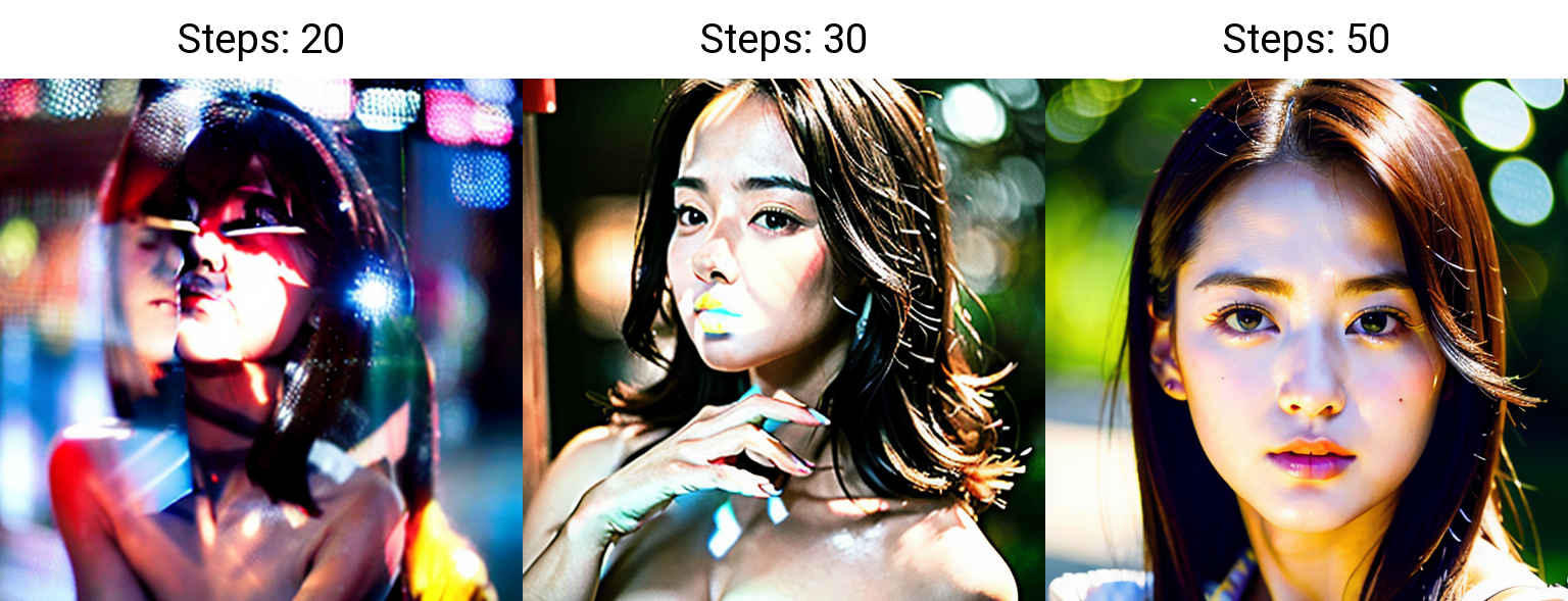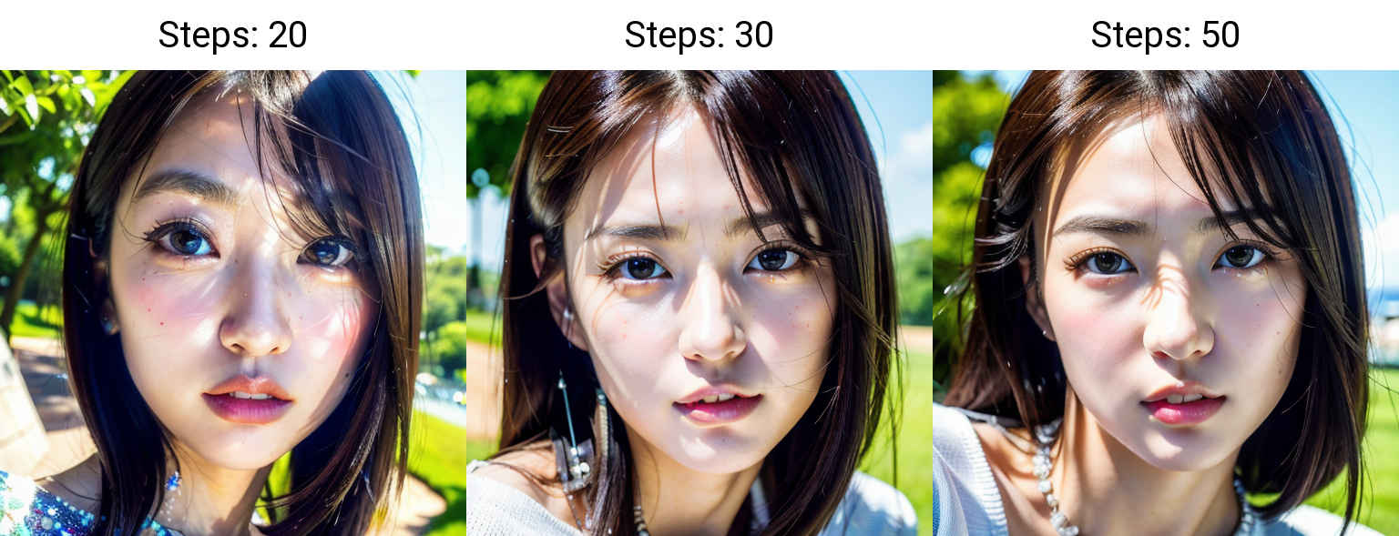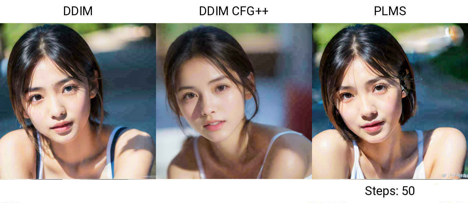 | DPM Adaptive | 状況に応じて適応的にサンプリングを行う 必要な箇所に焦点を当てた画像生成が可能となり、ディテールと速度のバランスを取ることができる | 30 〜 50 |