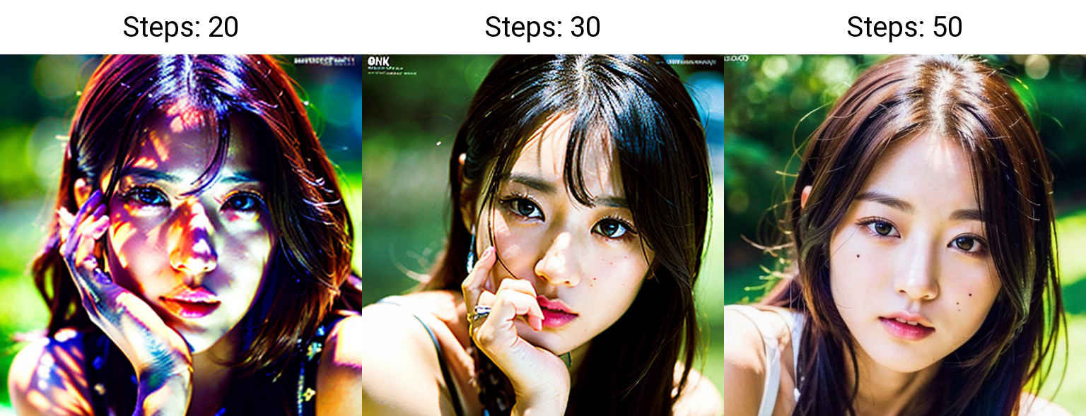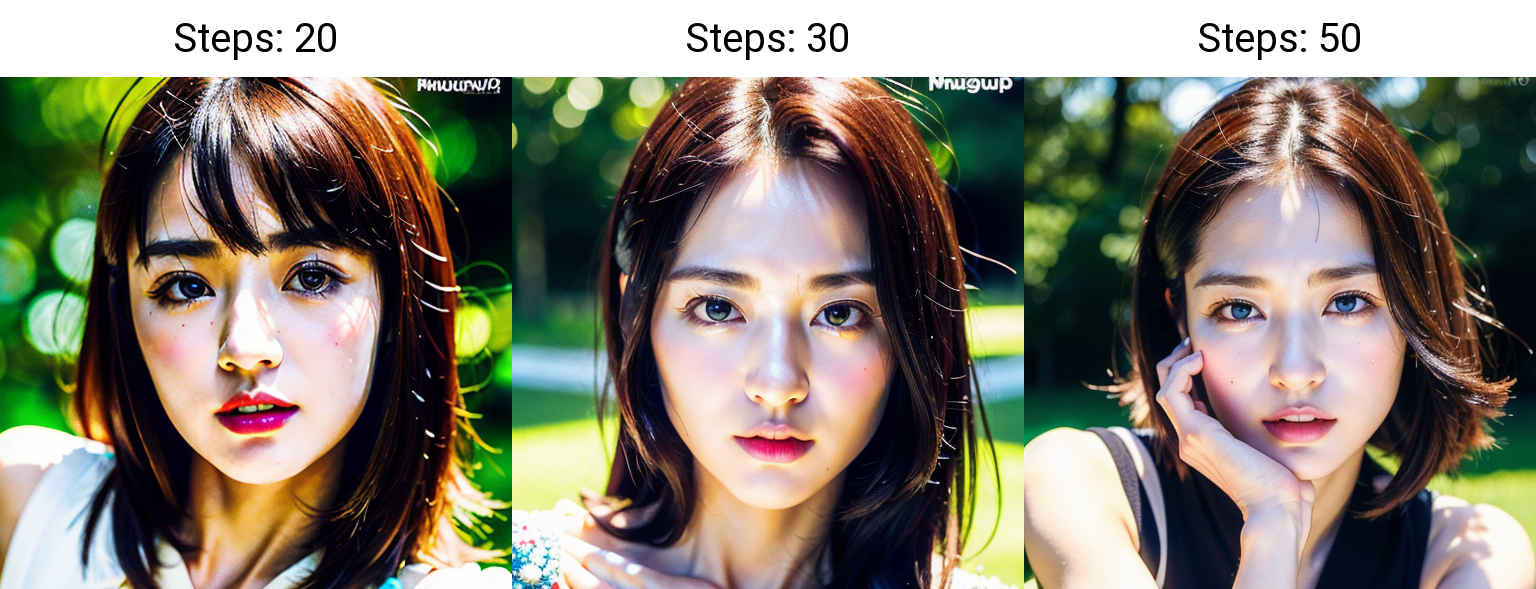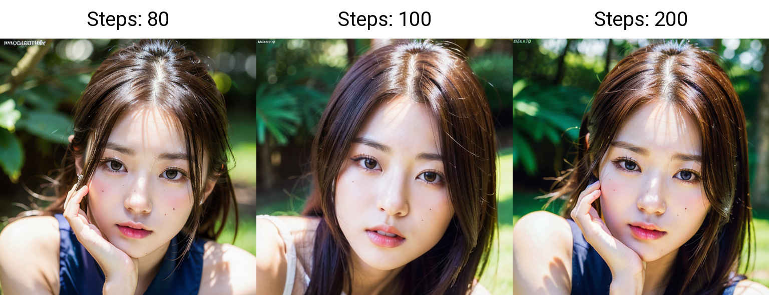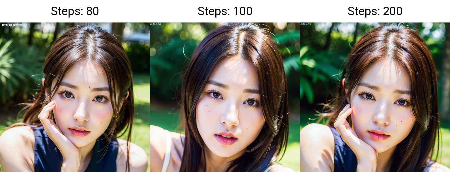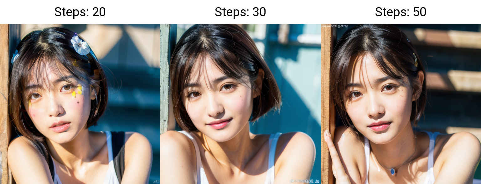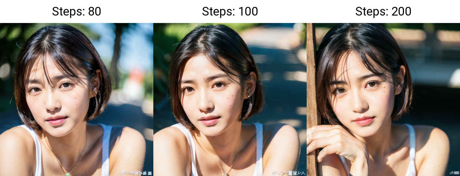 | DPM Adaptive | 状況に応じて適応的にサンプリングを行う 必要な箇所に焦点を当てた画像生成が可能となり、ディテールと速度のバランスを取ることができる | 30 〜 50 |