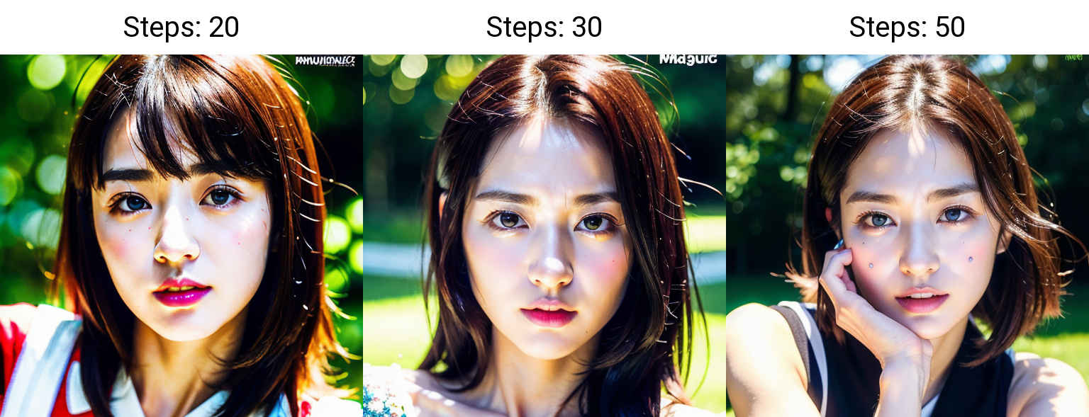 | PLMS (Pseudo Linear Multistep) | 計算コストが低く、品質と速度のバランスが良いサンプラー 幅広い用途で利用されており一般的な画像生成に適する | 30 〜 50 |