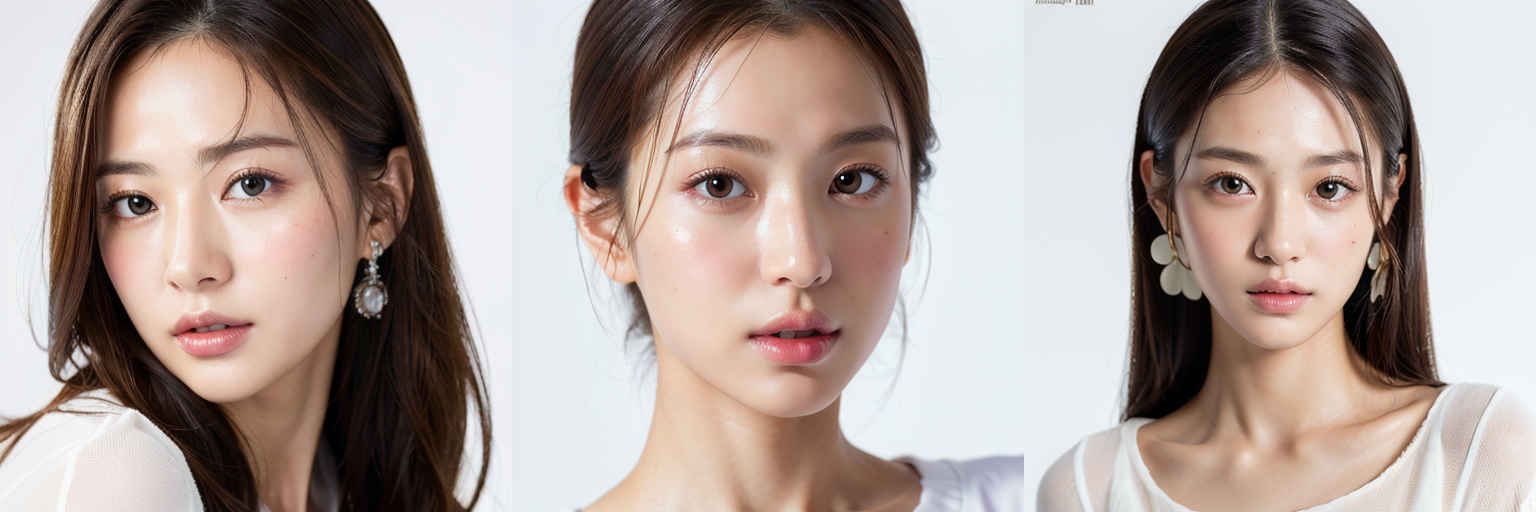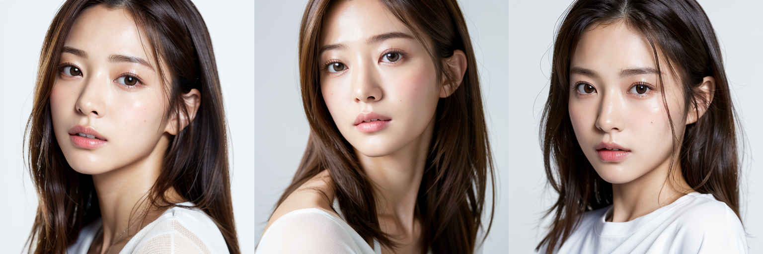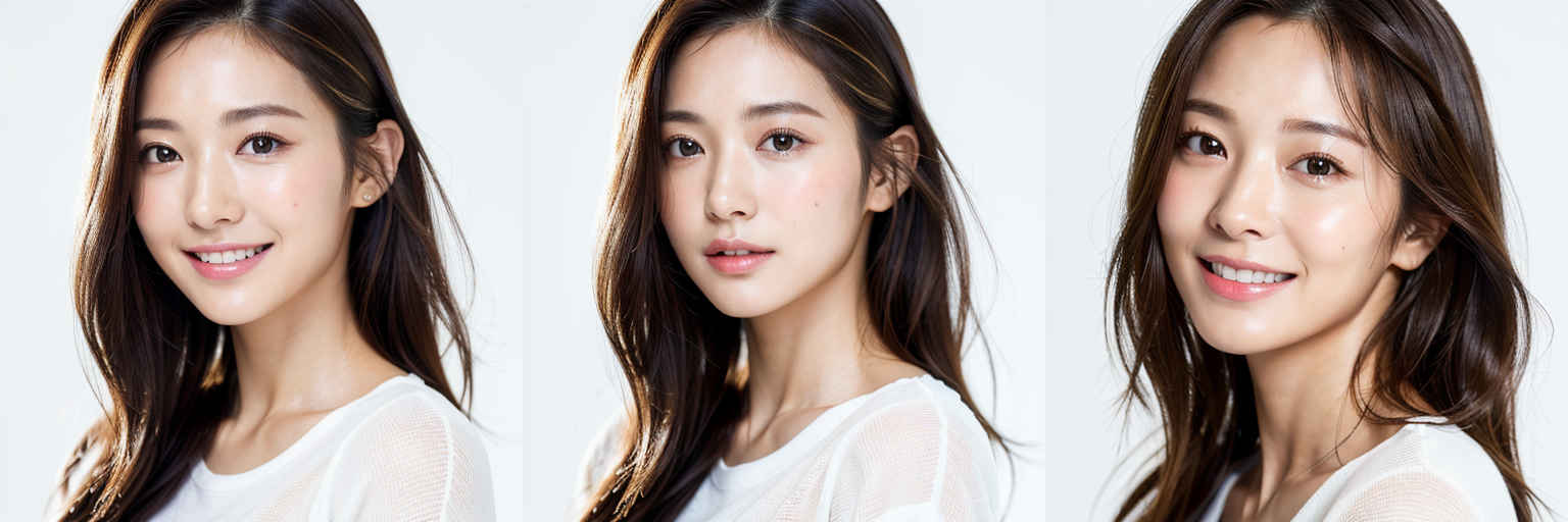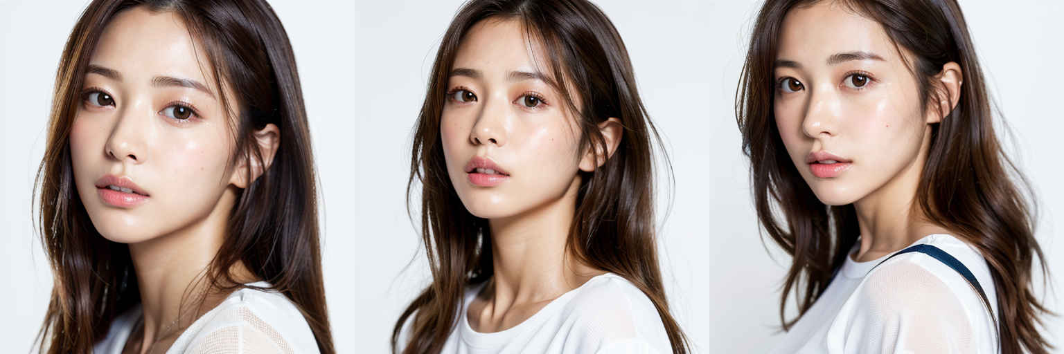 | (傑作、最高品質:1.4)、(8k、生写真、フォトリアル:1.2)、つやのある肌、詳細な肌、詳細な顔、詳細な目、1人の女の子、日本のアイドル、美しい顔、{個別プロンプト}、白背景、白い T シャツを着て |