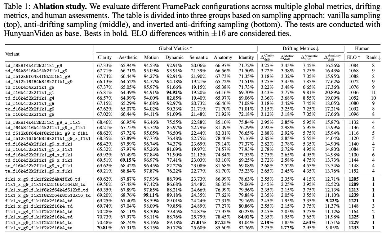 | 19 統計専門家 それに、計算効率の話はかなり重要やと思うわ。「Small-scale Training」セクションによると、FramePackは13BのHunyuanVideoモデルで480p解像度のビデオを、単一の 8×A100-80Gノードでバッチサイズ64で訓練できるらしい。 これは画像拡散モデルに匹敵するバッチサイズで、個人や研究室規模の訓練や実験に適してる。多くのコミュニティLoRAが画像ベースのワークアラウンドトレーニングに頼っている状況を考えると、これは大きな進歩やと思う。 また、論文は「Lower flow shift」という点も指摘してる。次フレーム予測方式は各推論でより小さな 3Dテンソルを生成するから、モデルはより低いフローシフト値で訓練できる。これがシャープでクリーンな、実際のビデオに近い結果につながるらしいで。 |