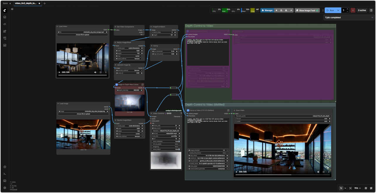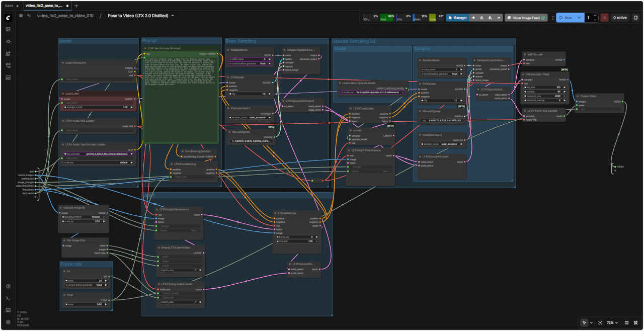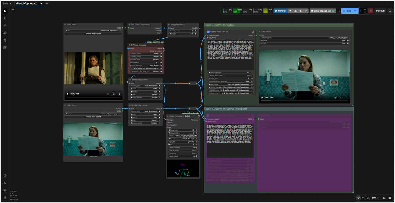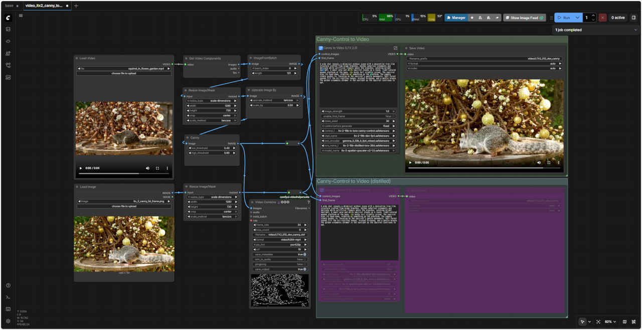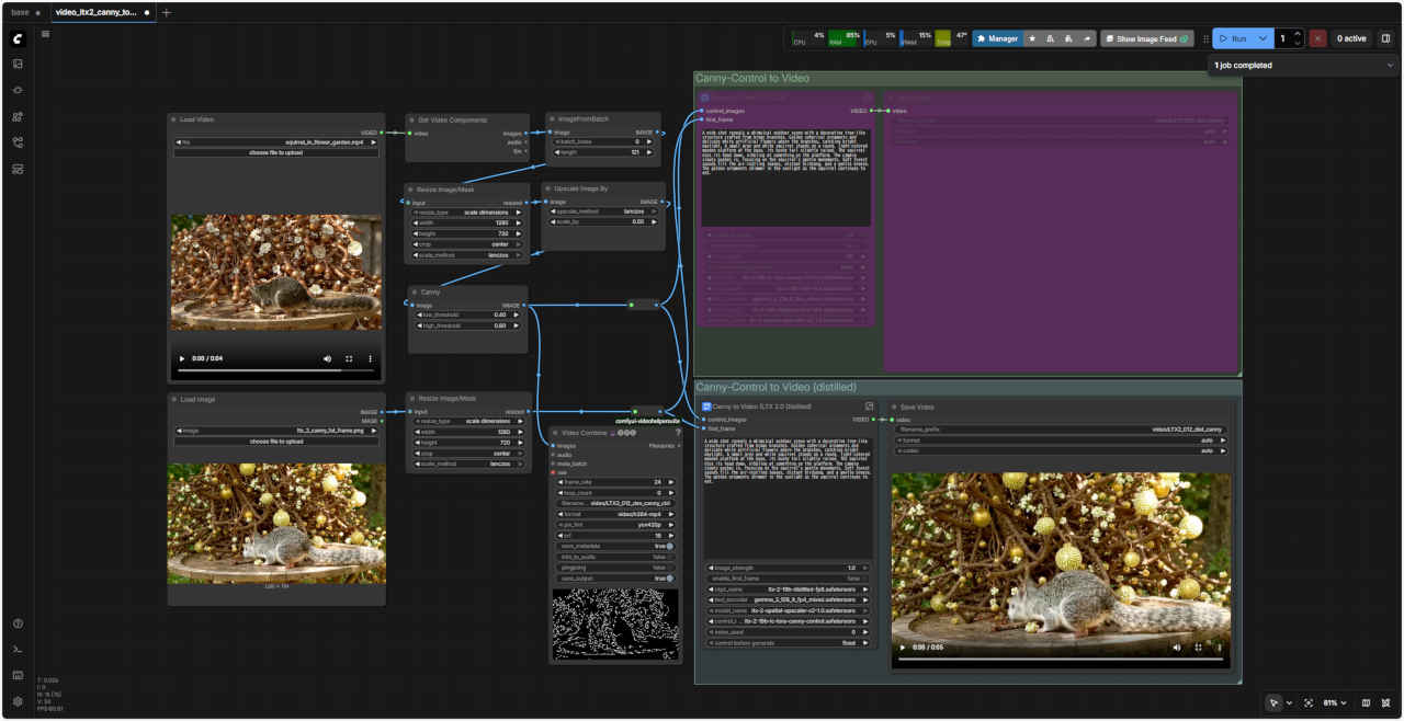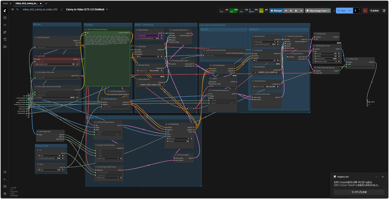ComfyUI オフィシャルサイトのテンプレートやオフィシャルブログ ComfyUI Blog: LTX-2 is natively supported in ComfyUI on Day 0 などで案内されている Control to Video ワークフローを検証する