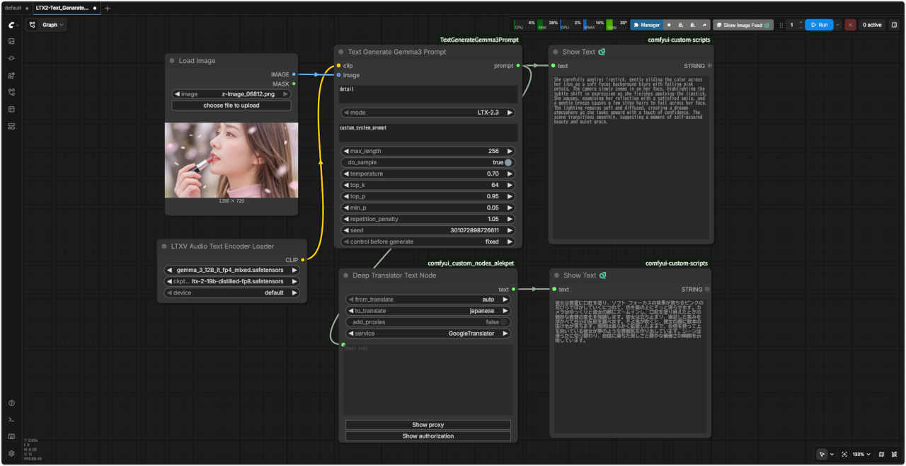 | 拡張ノード | ComfyUI-TextGenerateGemma3Prompt |