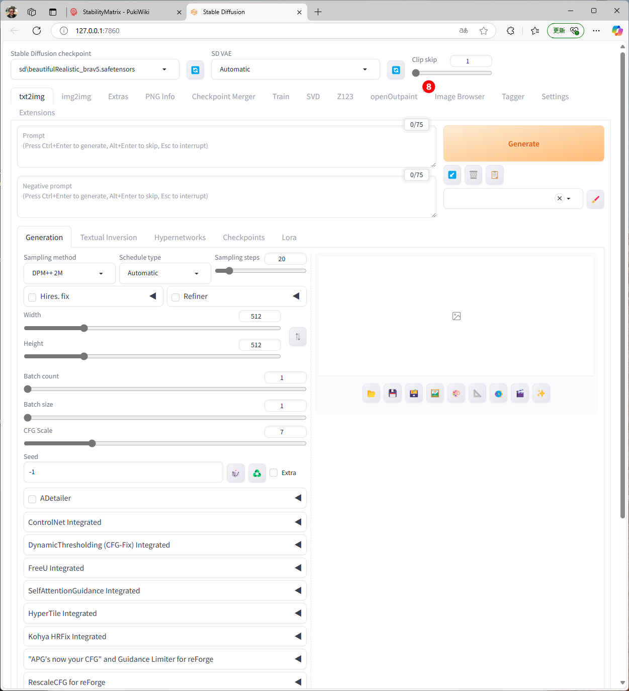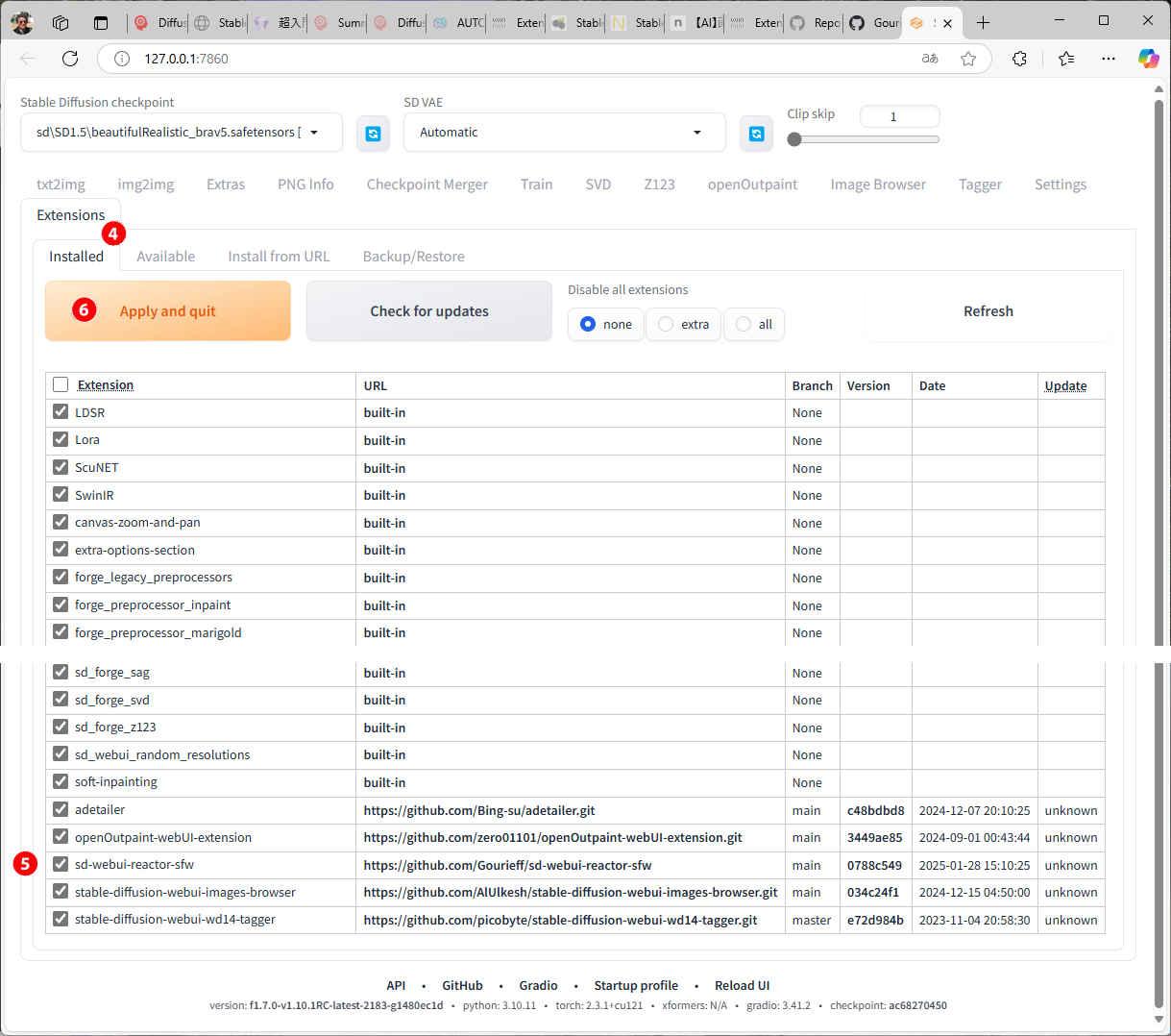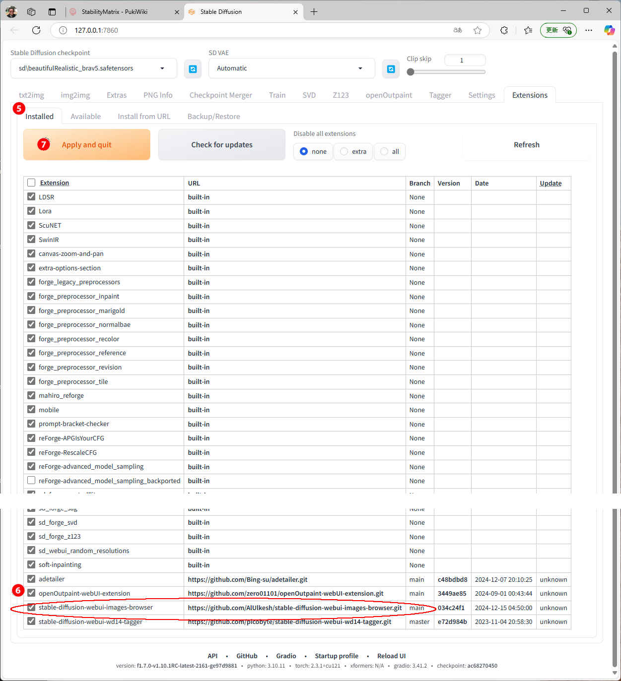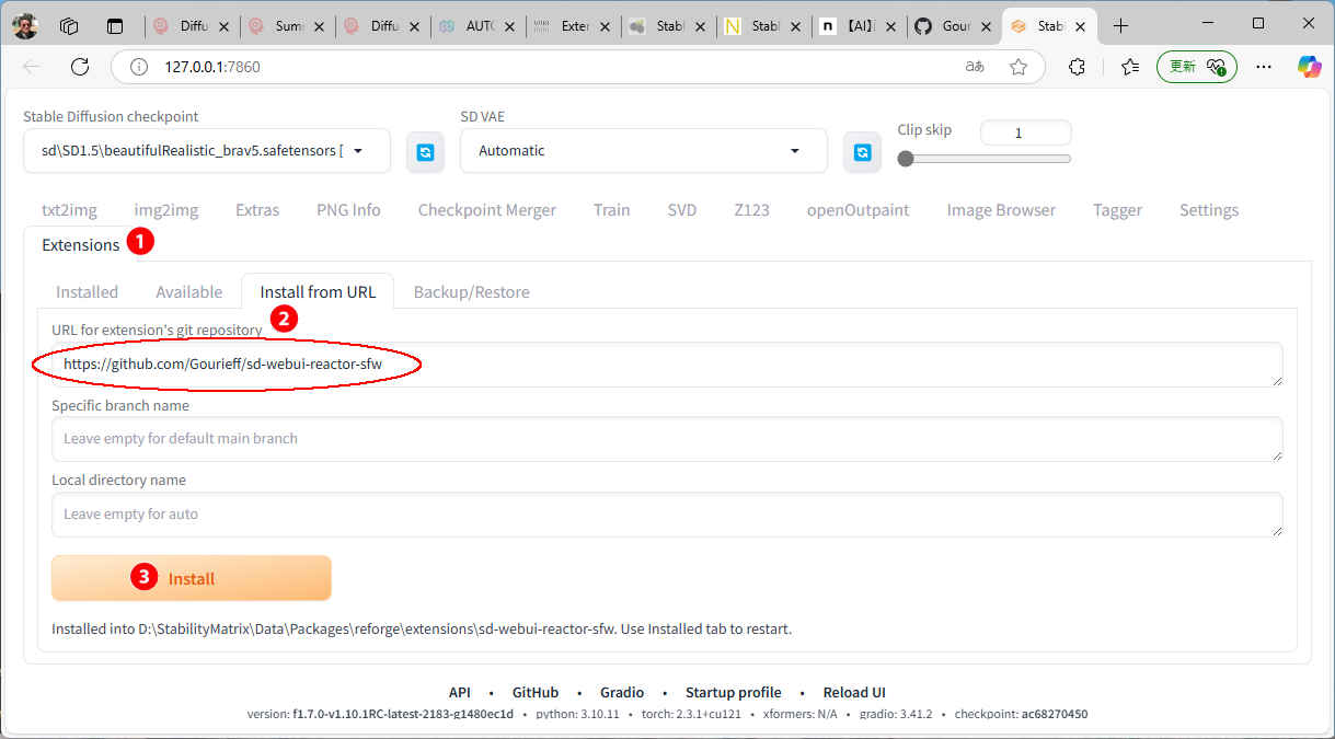$env:Path = "D:\StabilityMatrix\Data\Assets\Python310;" + $env:Path cd "D:/StabilityMatrix/Data/Packages/reforge" ./venv/Scripts/activate (venv) > pip install tf-keras※ 2025/04/10現在下記の競合が出るが無視する