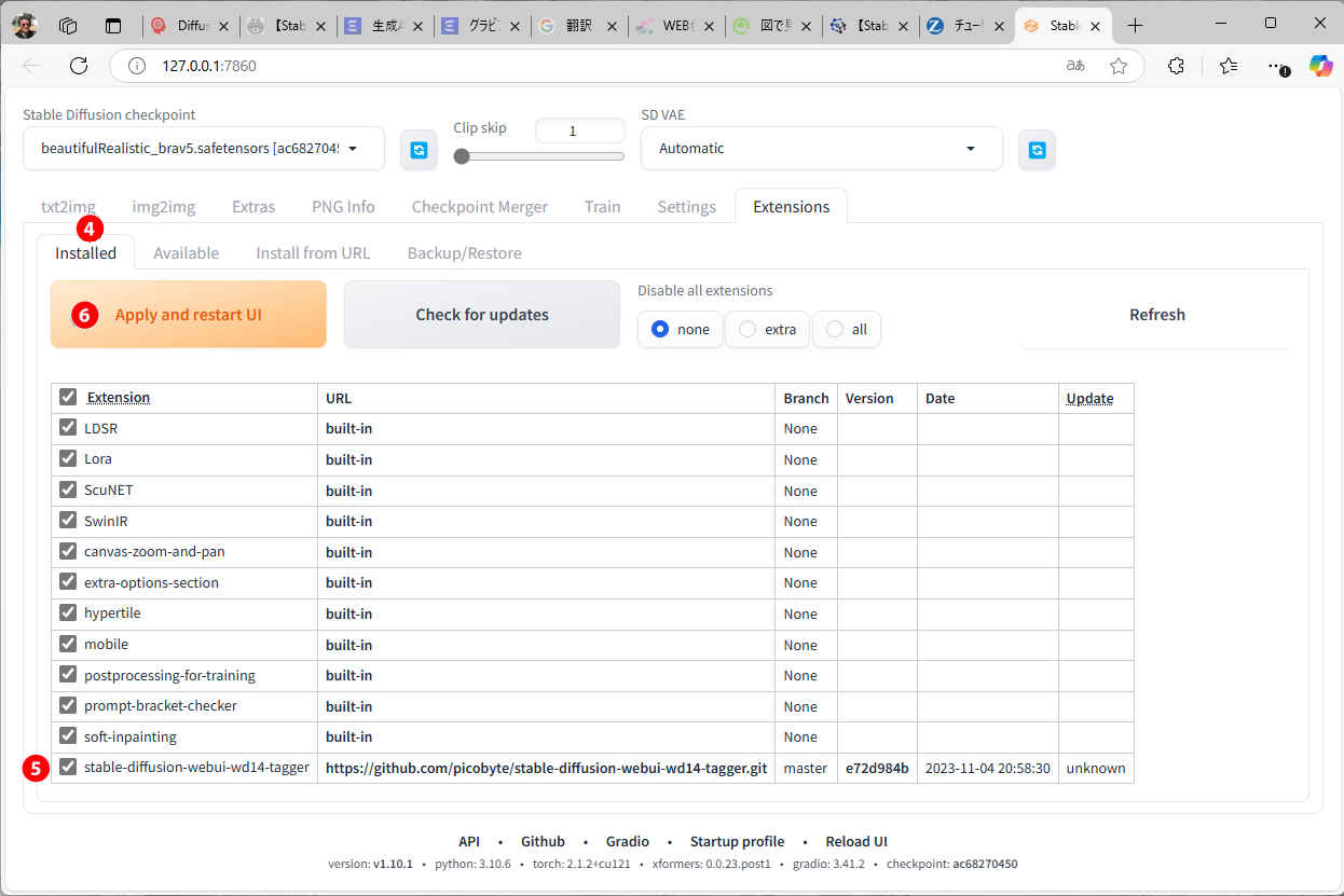 https://github.com/Mikubill/sd-webui-controlnet③「Install」ボタンを押す(※ 時間を要する)