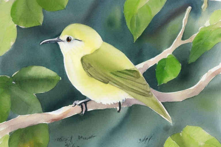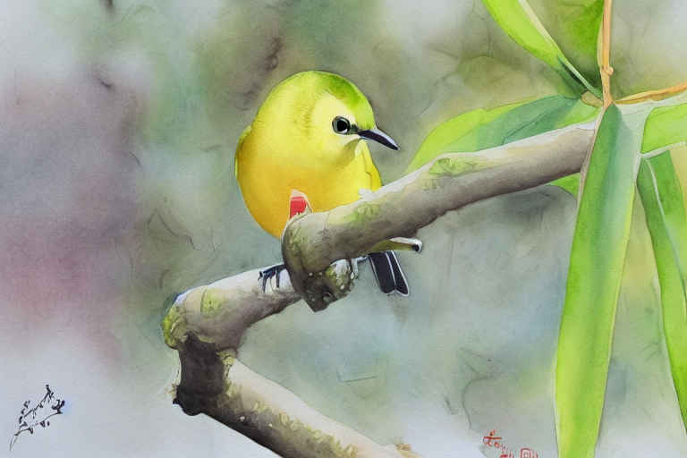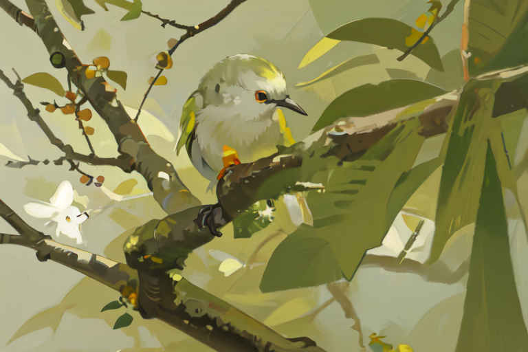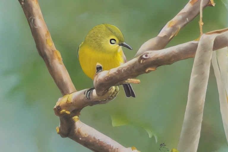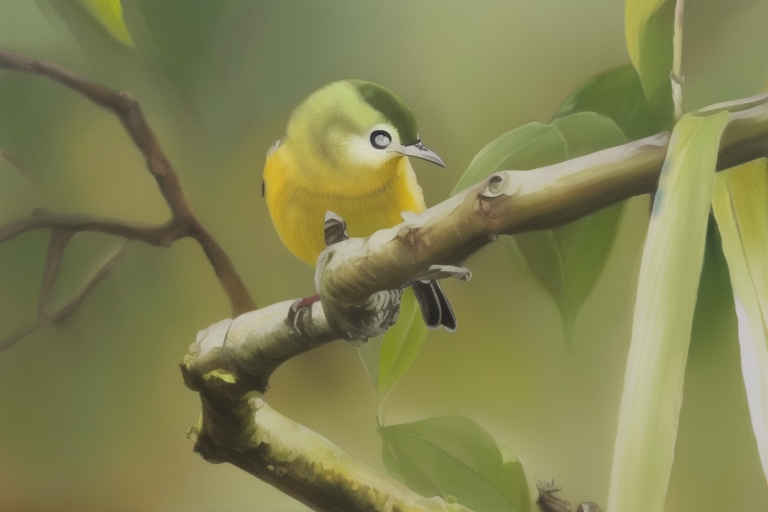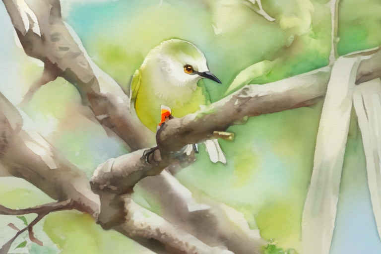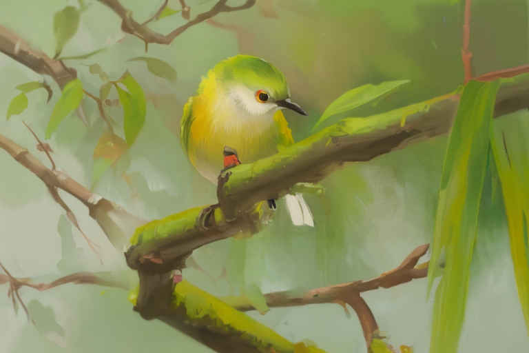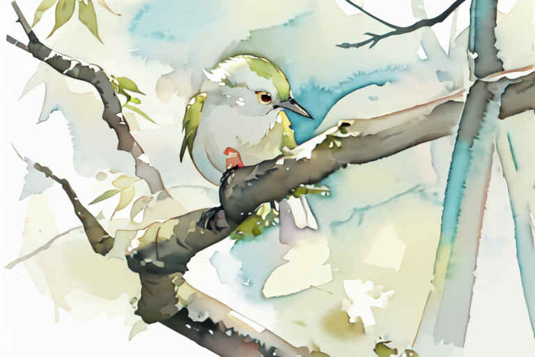 Prompt | ① White-eye perched on a branch, watercolor painting(枝にとまるメジロ、水彩画) |
