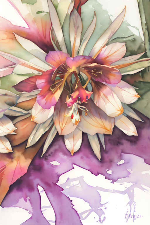 ② Epiphyllum oxypetalum, watercolor painting(月下美人、水彩画) | |