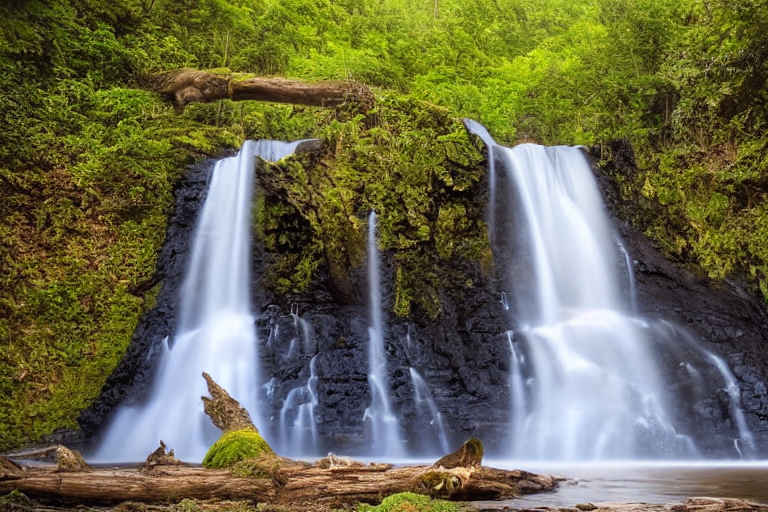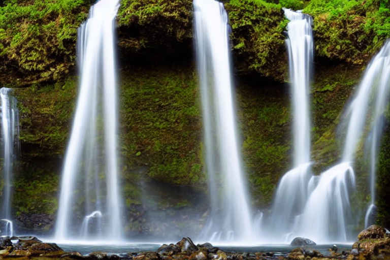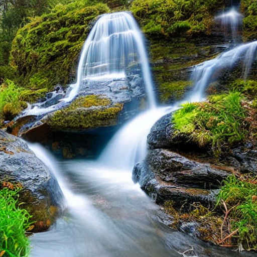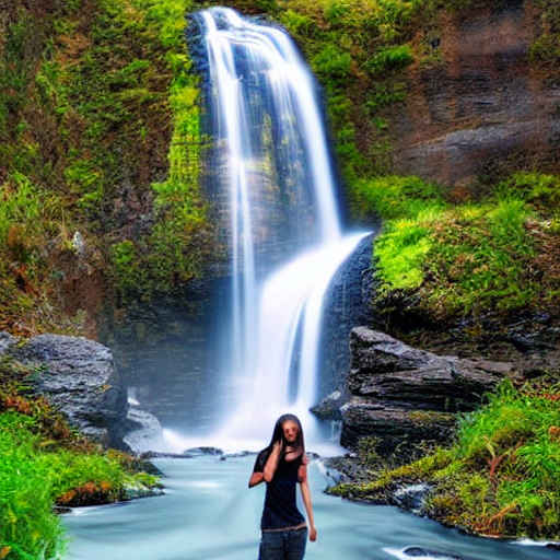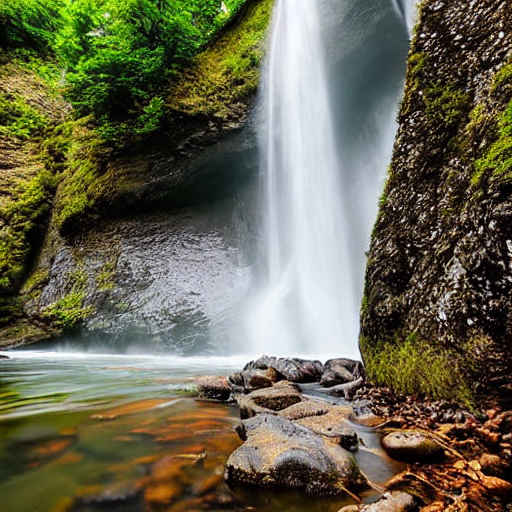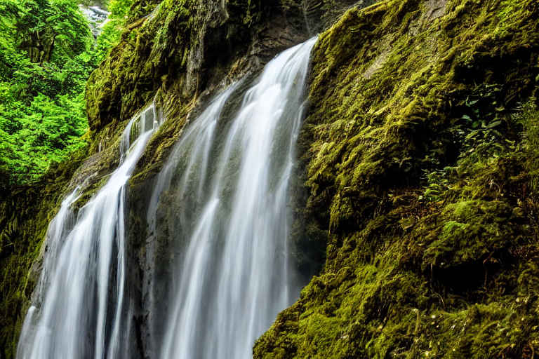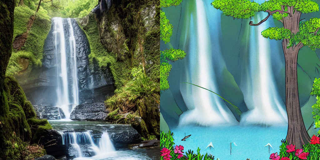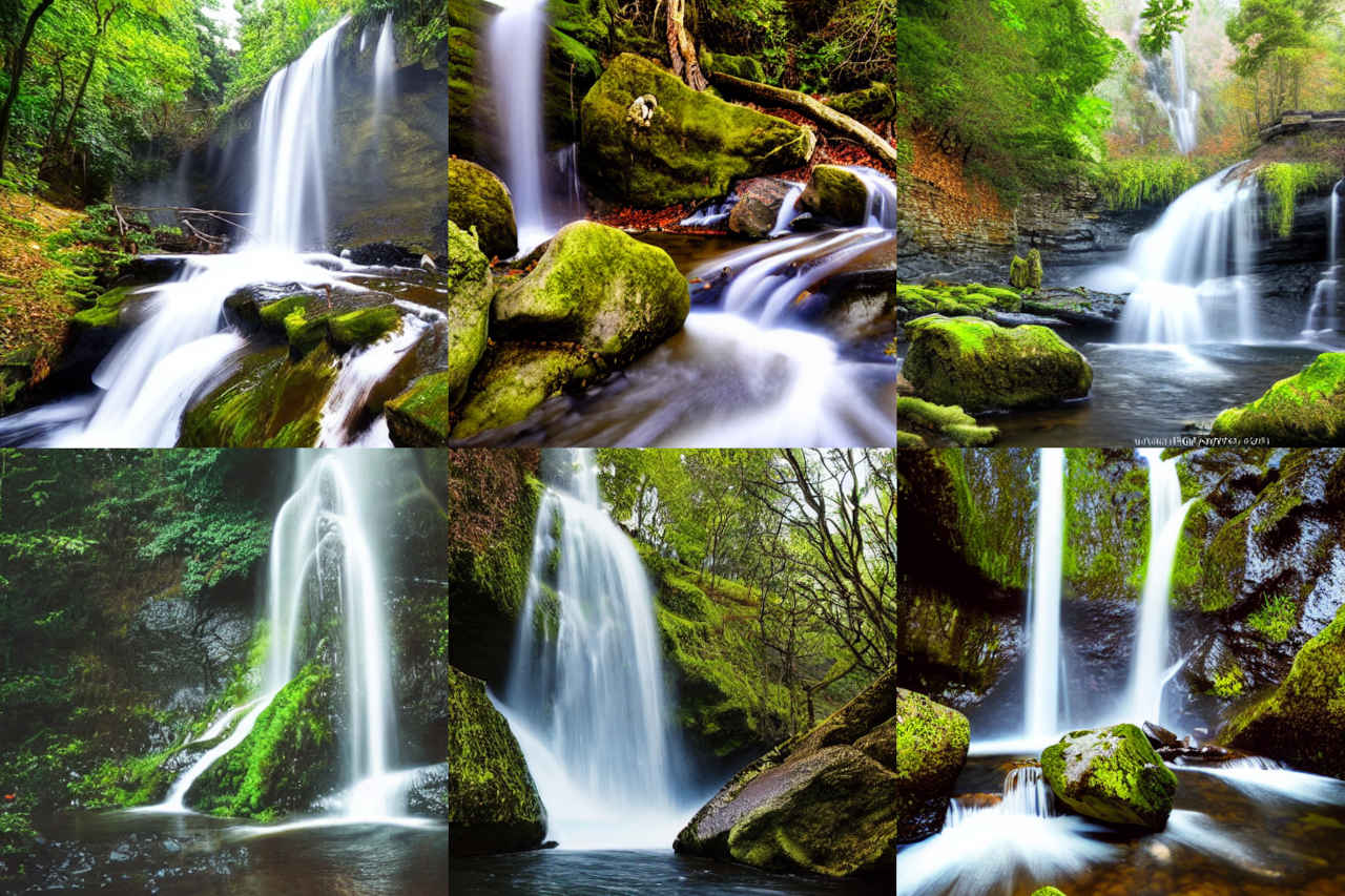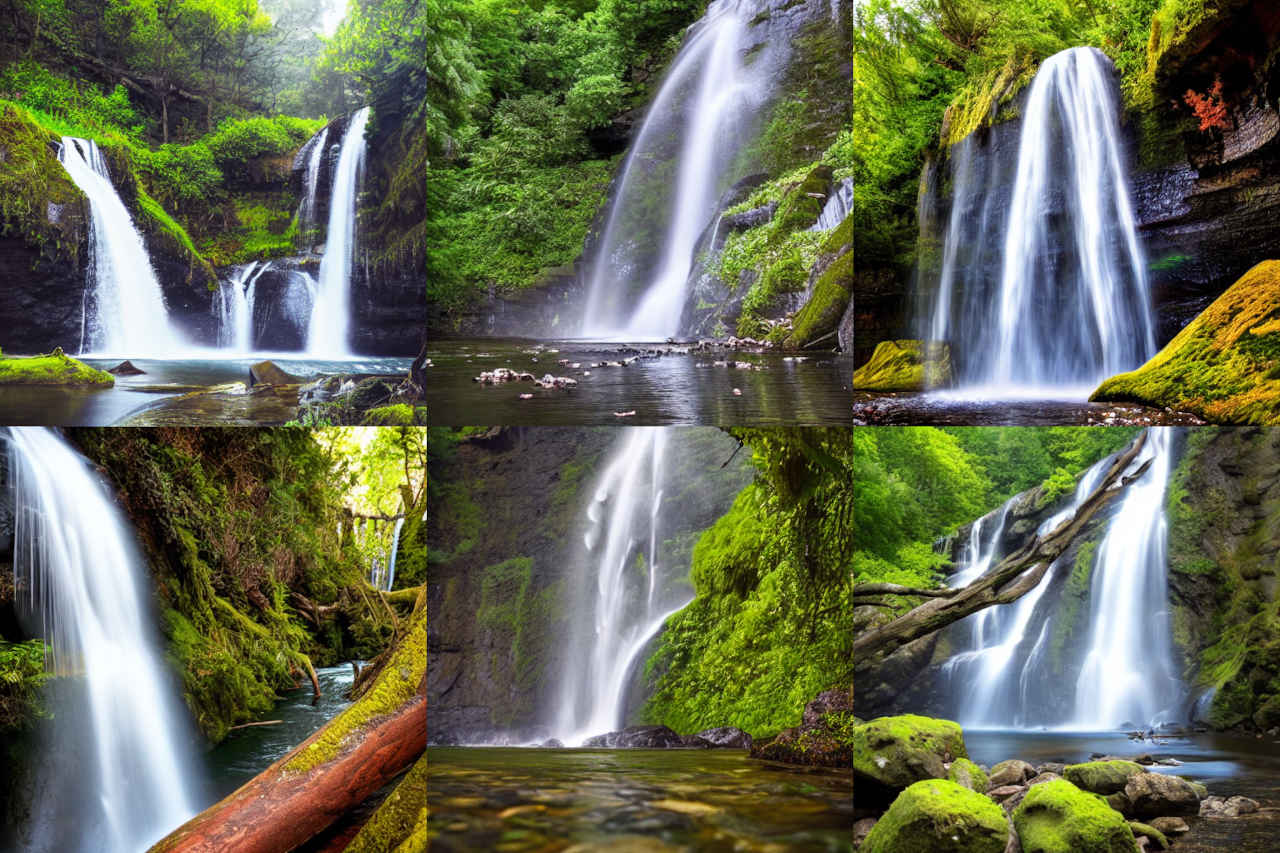 ## sd_001.py「自然と滝の写真」~ import torch from diffusers import StableDiffusionPipeline # モデルのフォルダーのパス model = "/StabilityMatrix/Data/Models/StableDiffusion/SD1.5/v1-5-pruned-emaonly.safetensors" # GPUを使う場合は"cuda" 使わない場合は"cpu" device = 'cuda' # パイプラインを作成 pipeline = StableDiffusionPipeline.from_single_file(model).to(device) # プロンプト prompt = "nature and waterfall photography" # 画像を生成 response = pipeline(prompt=prompt) image = response.images[0] image.save("image_001.png")・モデルのパスとデバイスを指定してパイプラインを作成する