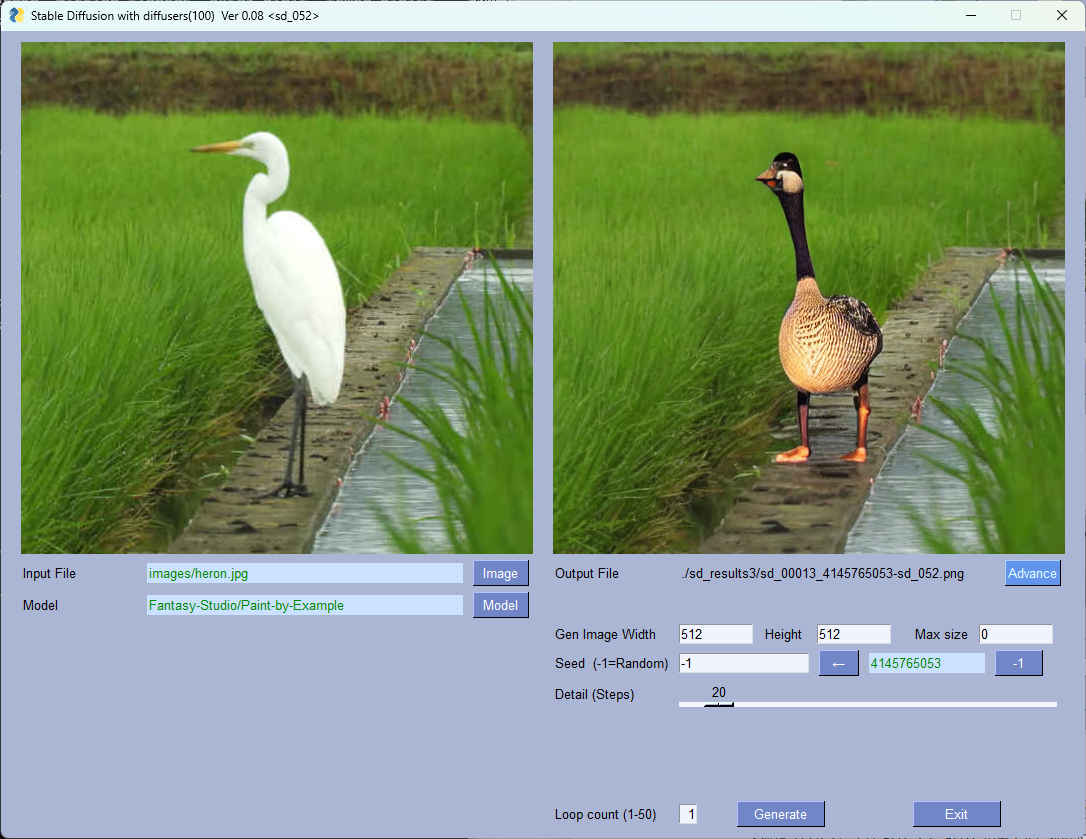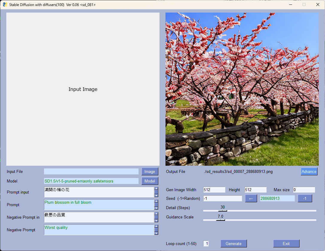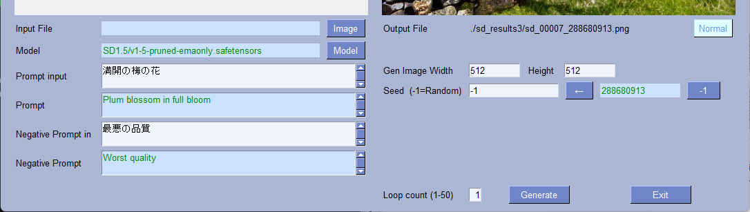 | --step | int | 20 | 生成ステップ数 | 〇 | 〇 |