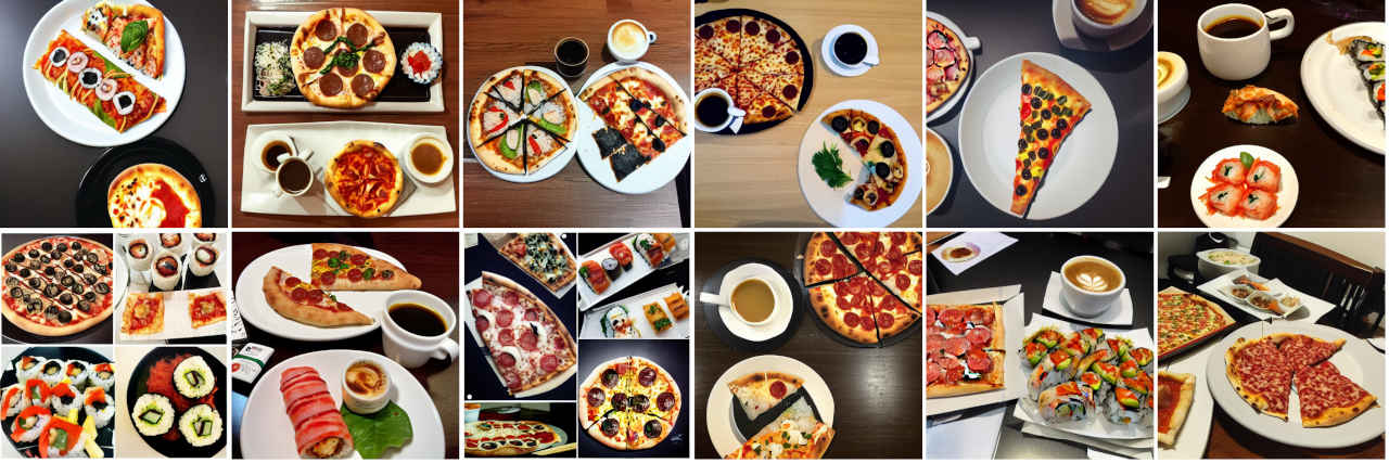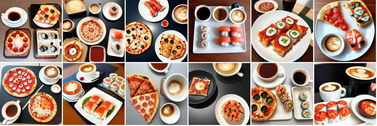 | Prompt | Pizza, sushi and coffee for dinner |