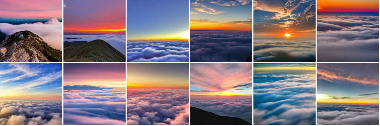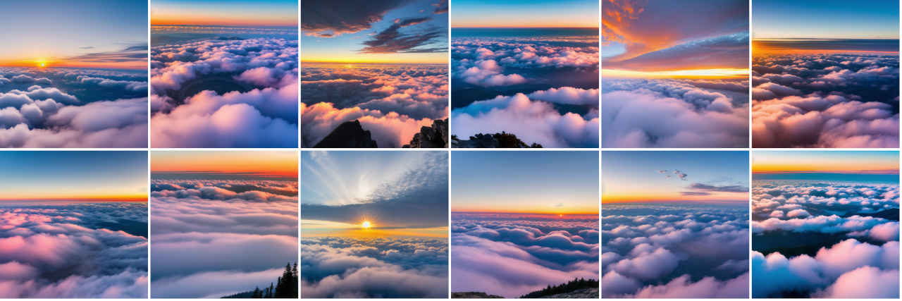| Prompt | Breathtaking view of the sunrise from the mountain. Sea of clouds can be seen at the same time. |