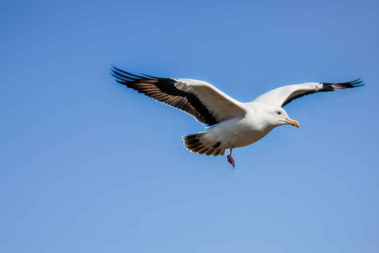 雲が空をゆっくりと流れ、時折遠くで鳥が飛んでいく |