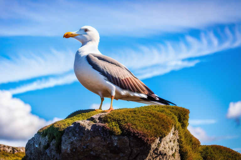 Clouds drift slowly across the sky while birds occasionally fly by in the distance.