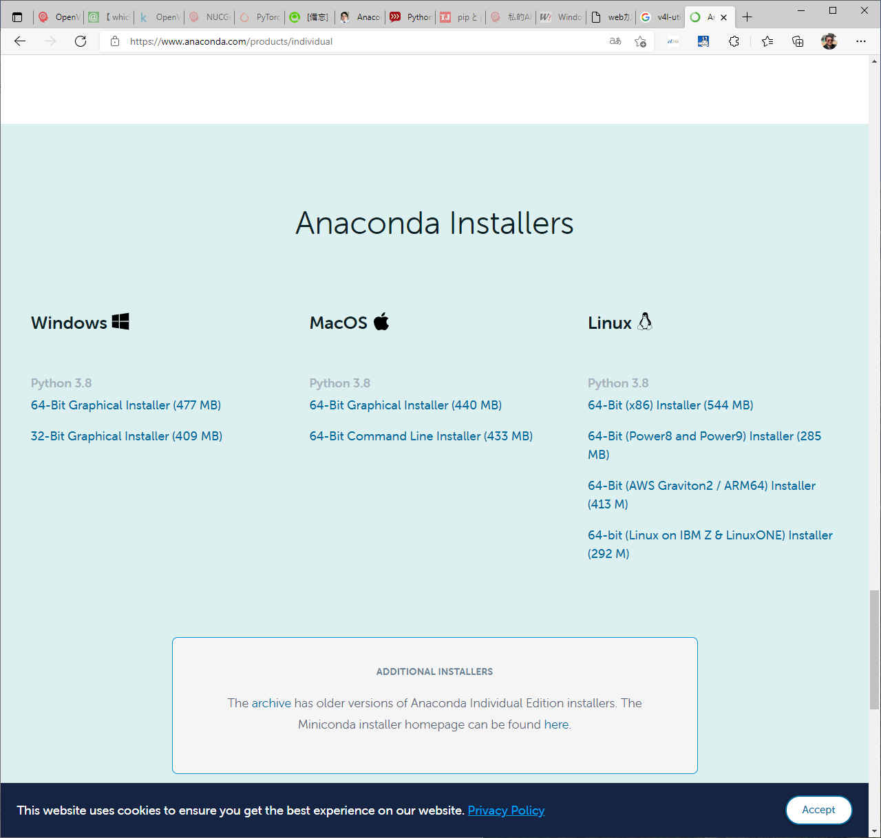 bility to download the packages contained in Anaconda Individual Edition provided you comply with the license for each such package. These licenses may be accessed from within the Anaconda Individual Edition software or https://www.anaconda.com/legal. Information regarding which license is applicable is available from within many of the third party software packages and tools and at https://repo.anaconda.com/pkgs/main/ and https://repo.anaconda.com/pkgs/r/. Anaconda reserves the right, in its sole discretion, to change which third party tools are include
