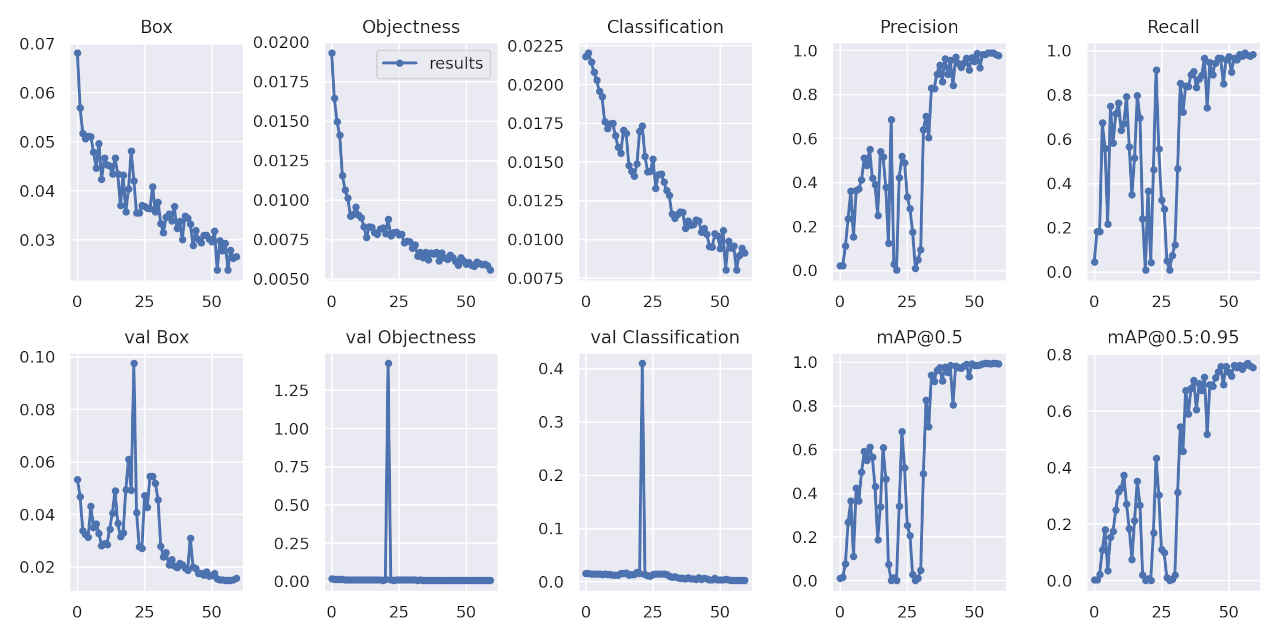 51/59 14.2G 0.03174 0.006027 0.01057 0.04834 58 640: 100% 30/30 [00:40<00:00, 1.35s/it]