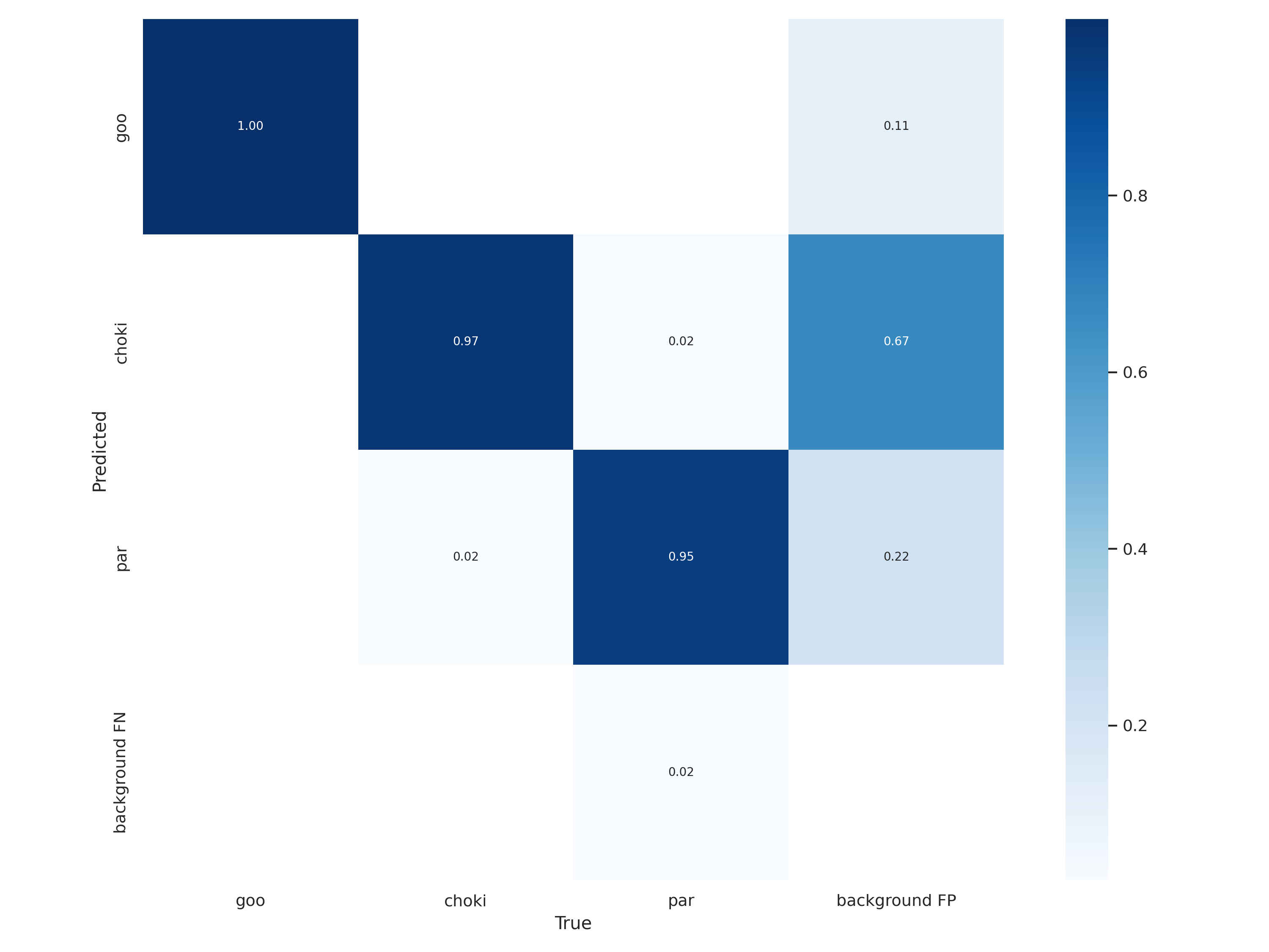 | janken_test2.mp4 | python object_detect_yolo7.py -m ../yolov7-main/runs/train/yolov7_custom3_60/weights/best.onnx -l janken.names_jp -i ../../Videos/janken_test2.mp4 -d GPU |