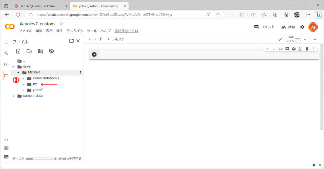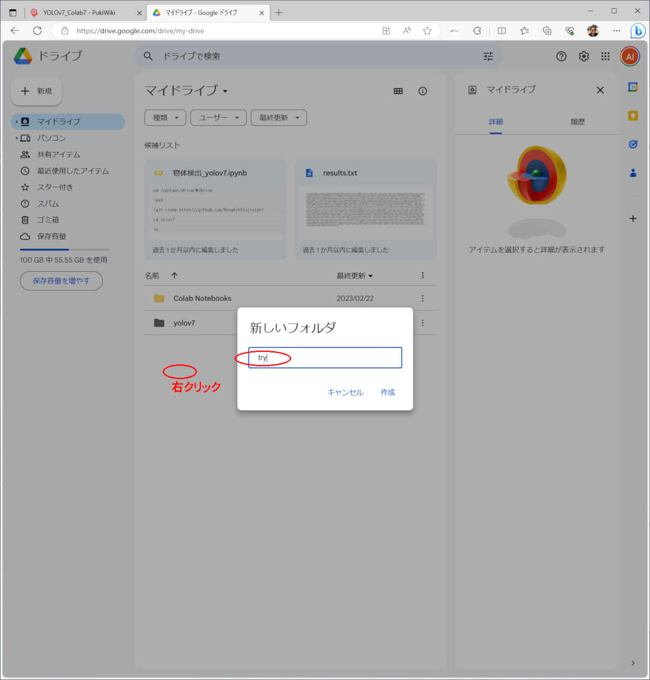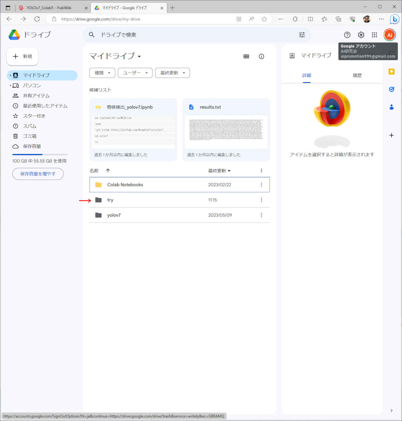 /content/drive/MyDrive/try※ カレントディレクトリを確認するコマンド