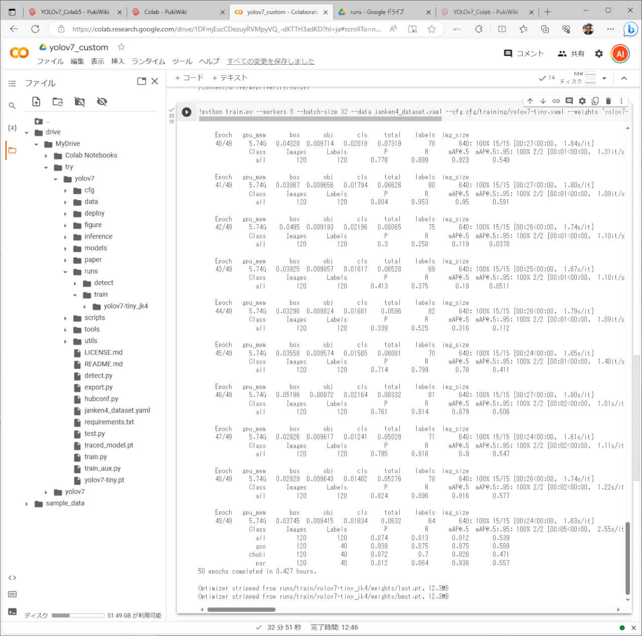 !python train.py --workers 8 --batch-size 16 --data janken4_dataset.yaml --cfg cfg/training/yolov7-tiny.yaml --weights 'yolov7-tiny.pt' --name yolov7-tiny_jk4 --hyp data/hyp.scratch.tiny.yaml --epochs 50 --device 0
