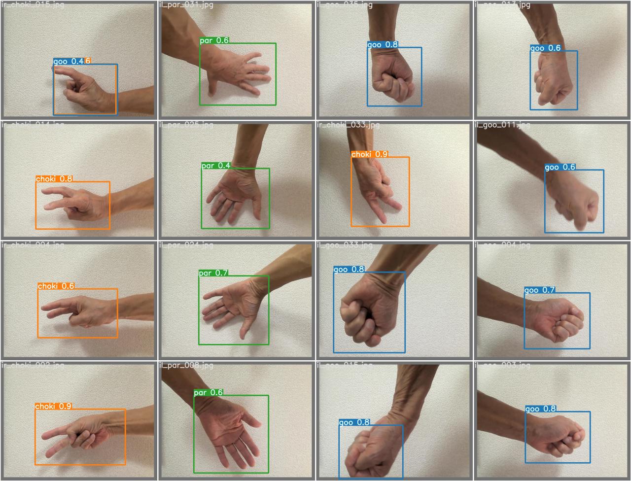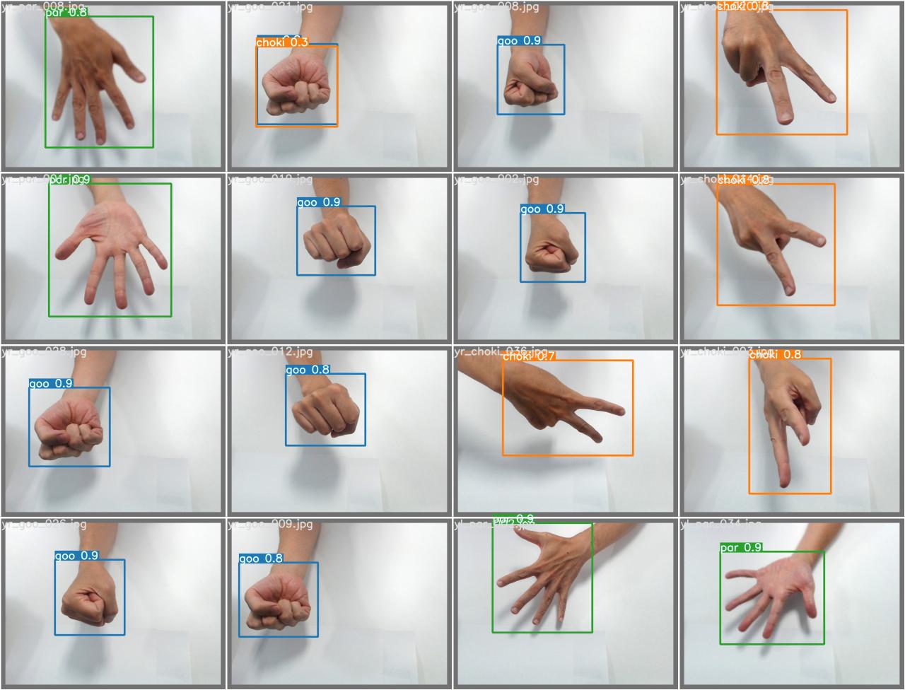| janken_test2.mp4 | python object_detect_yolo7.py -m ../yolov7-main/runs/train/yolov7-tiny_jk4/weights/best.onnx -l janken.names_jp -i ../../Videos/janken_test2.mp4 |