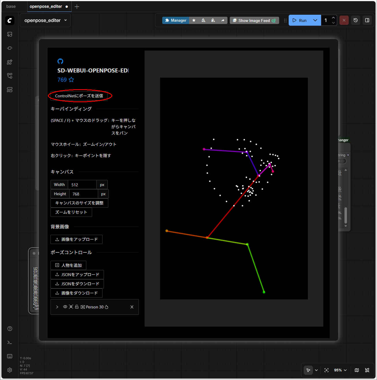 ・表示されたメニューから「Open in Openpose Editor」を選択すると「Openpose Editor」が起動する