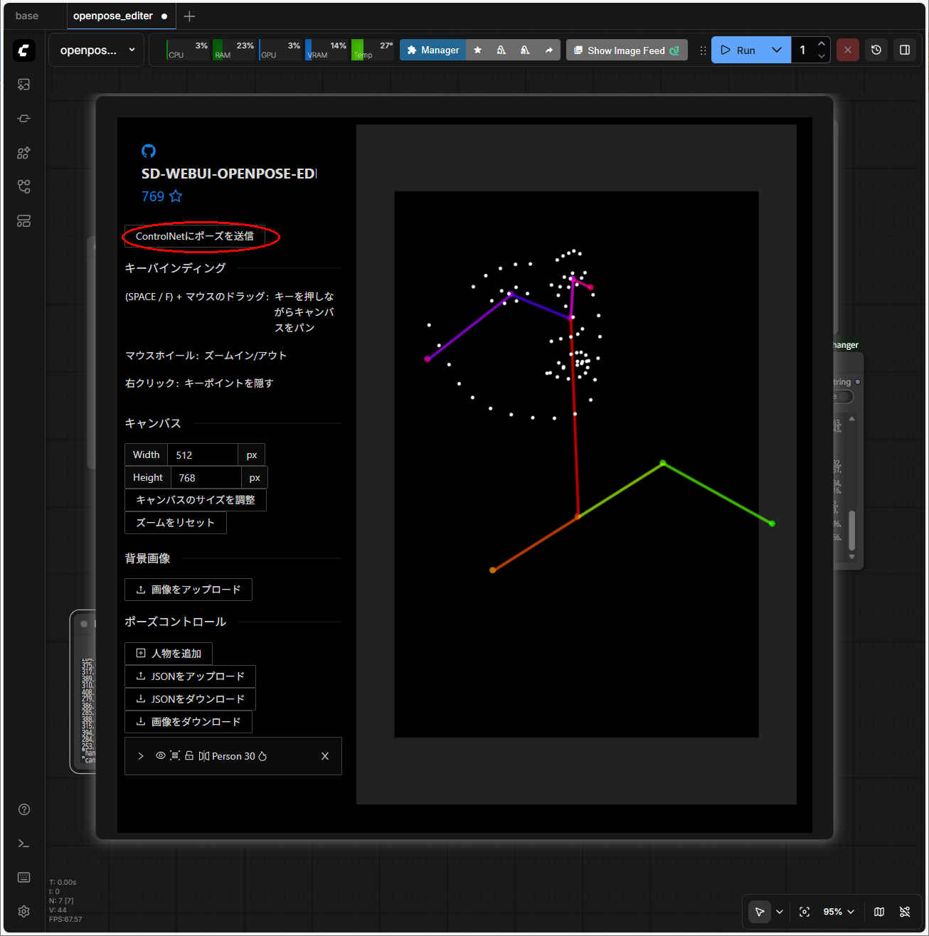 『space-nuko/ComfyUI-OpenPose-Editor』ノードが動かない†
