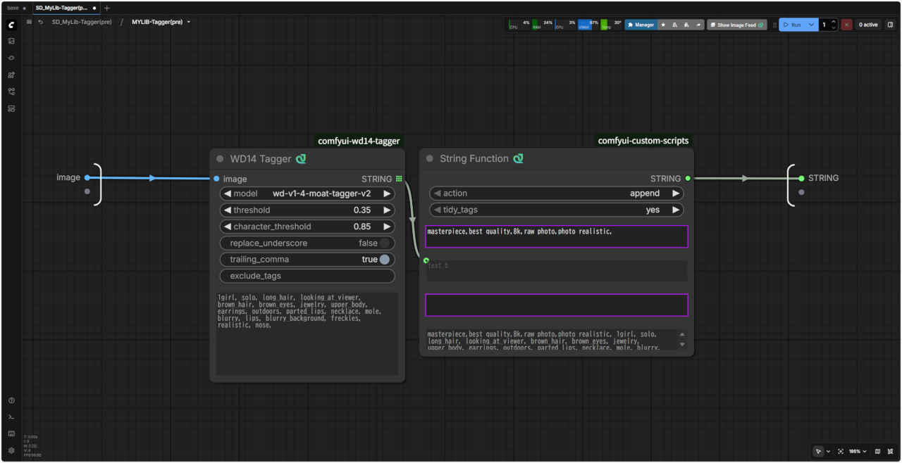 | 画像からプロンプトを得る「Tagger」 を「SubGraph」化する。画像からプロンプト文字列を出力するノード |