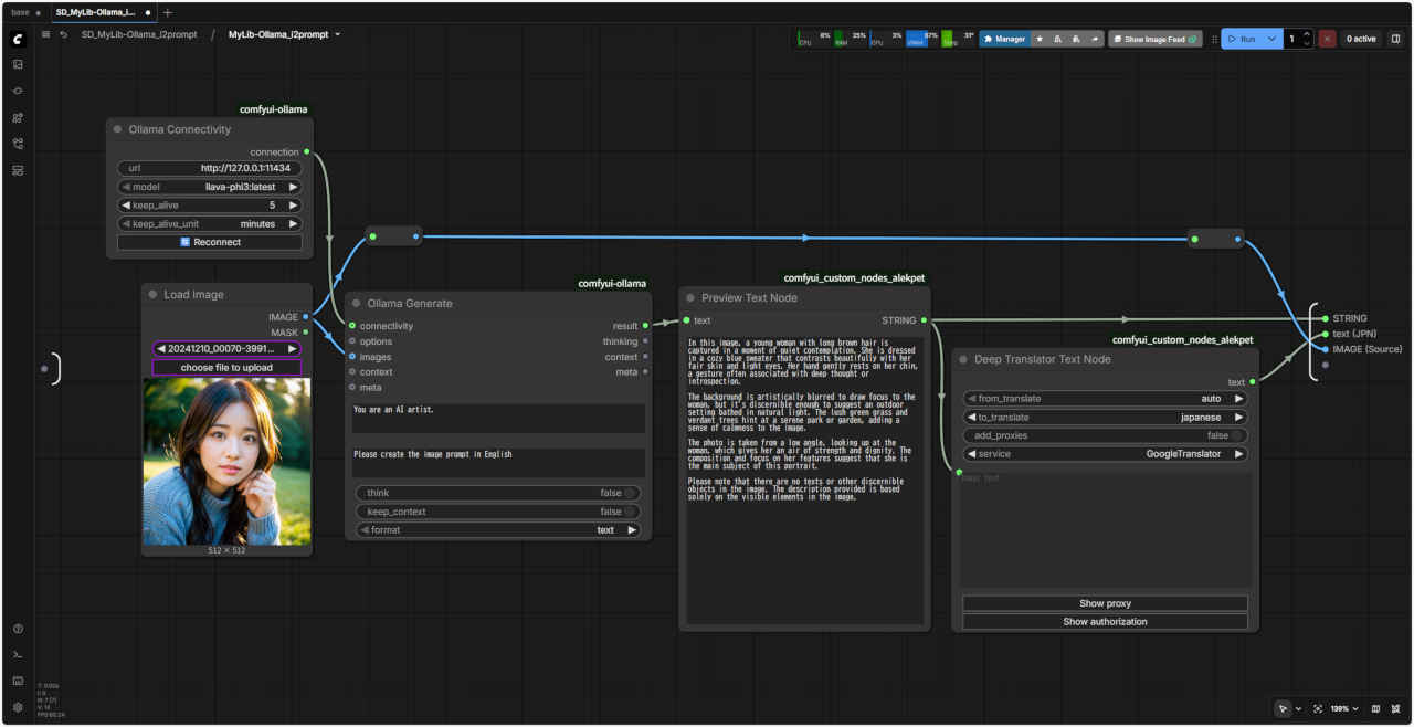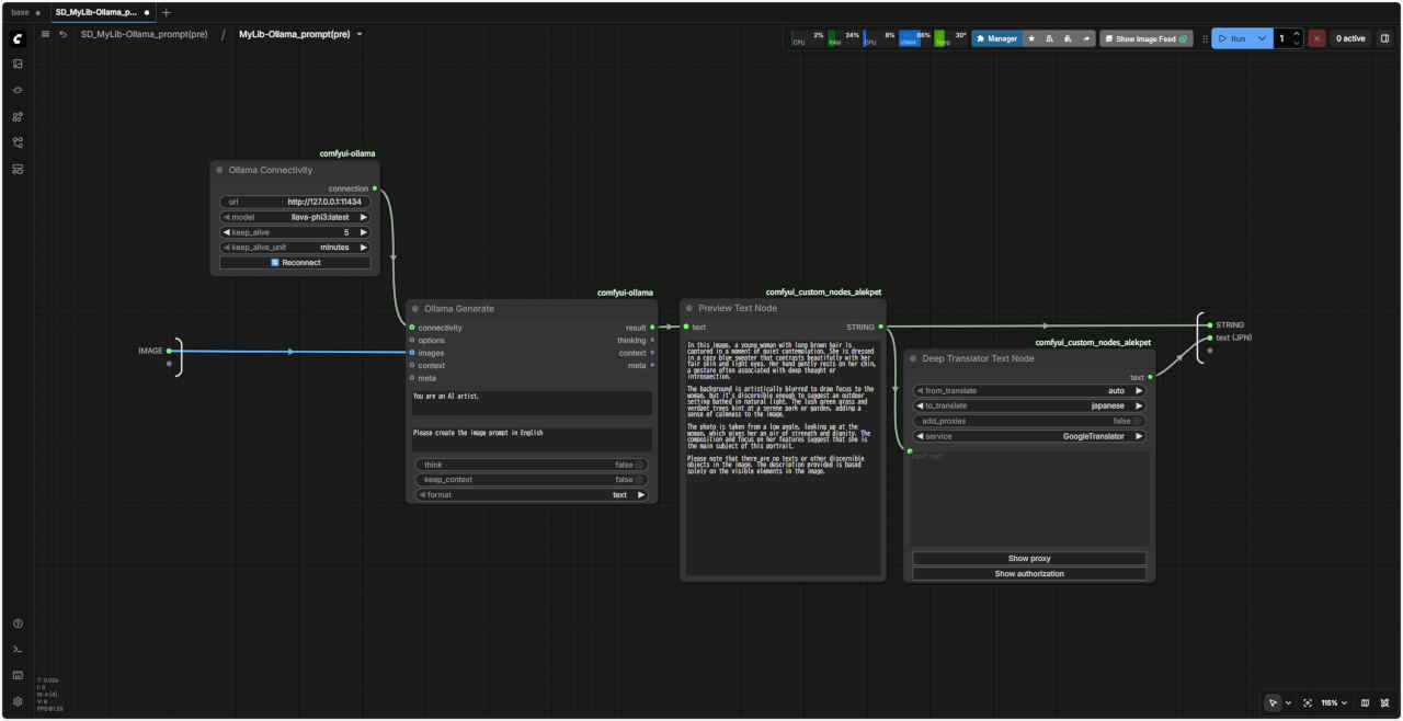 | LLM「Ollama」を使用して画像からプロンプトを得る を「SubGraph」化する。画像からプロンプト文字列を出力するノード |