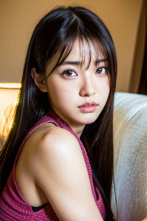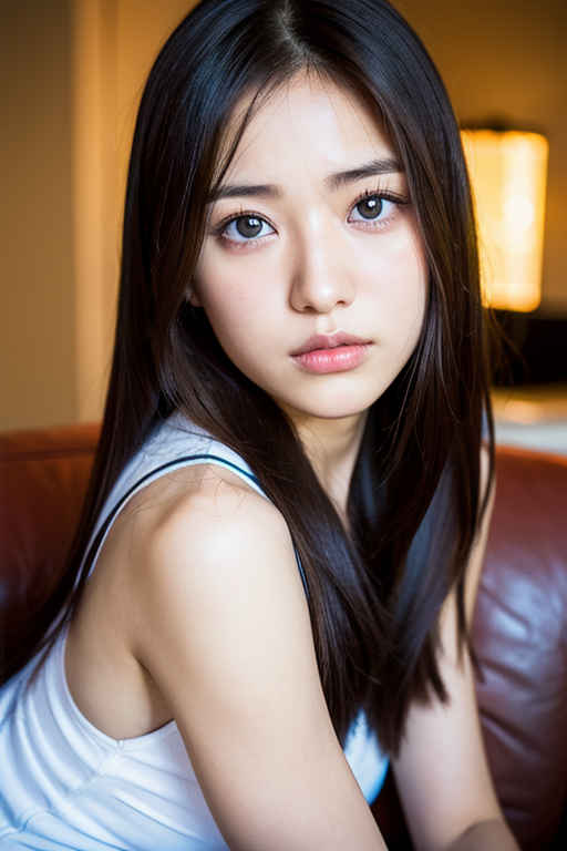 | 最高品質、超高解像度、(フォトリアリスティック:1.4)、RAW写真、日本人女の子1人、ソロ、かわいい、(瞳孔、目のライト)、詳細な美しい顔、(ロングヘア)、ソファに座る |