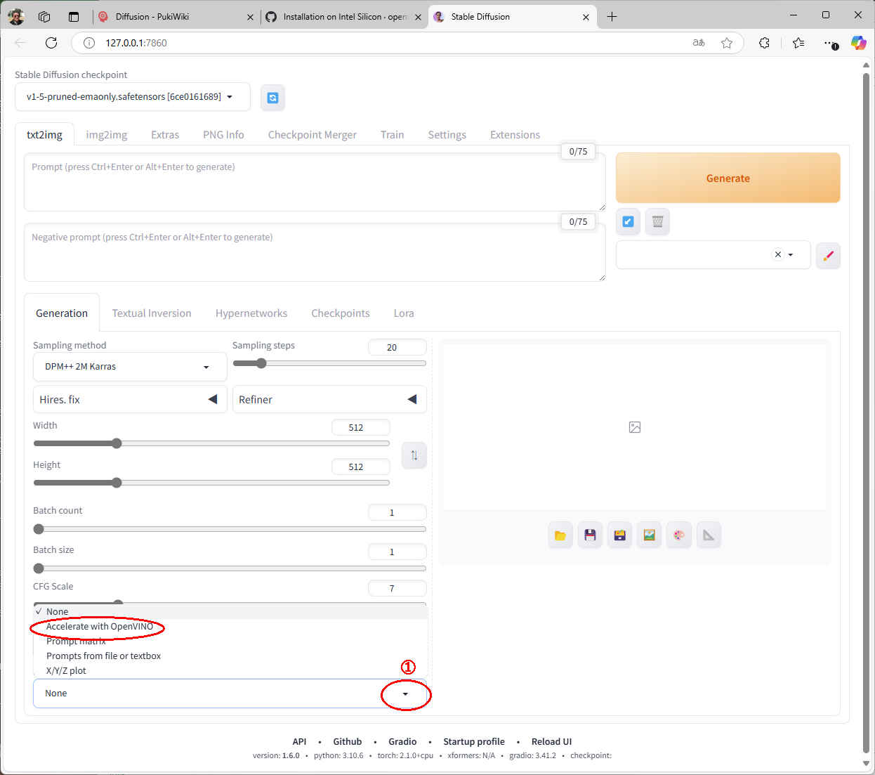 (StableDiffusion) git clone https://github.com/openvinotoolkit/stable-diffusion-webui.git (StableDiffusion) cd stable-diffusion-webui