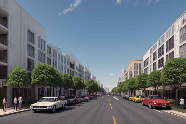 | デジタルイラストのスタイルで描かれた、バルコニーと家の前に豊かな緑がある、通りに面したモダンな家。アーティストのサイモン・ストレンハーグからインスピレーションを得たこのシーンは、建築と自然の未来的な融合を捉えています。カラーパレットは冷たい青と暖かい緑に傾いており、穏やかな雰囲気を呼び起こします。バルコニーにいる人々の表情には、穏やかな満足感が表れています。柔らかく拡散した照明が幻想的な雰囲気を高めます |