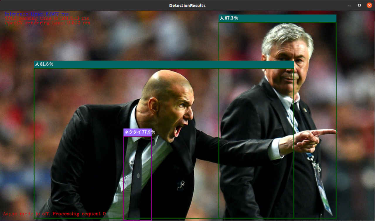変換した学習済みモデルで 推論プログラム「detect2.py」の実行